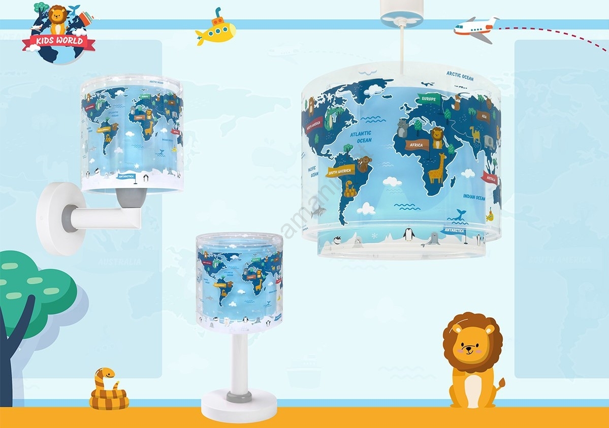 • Dalber 40672 - Lustre infantil WORLD 1xE27/15W/230V azul