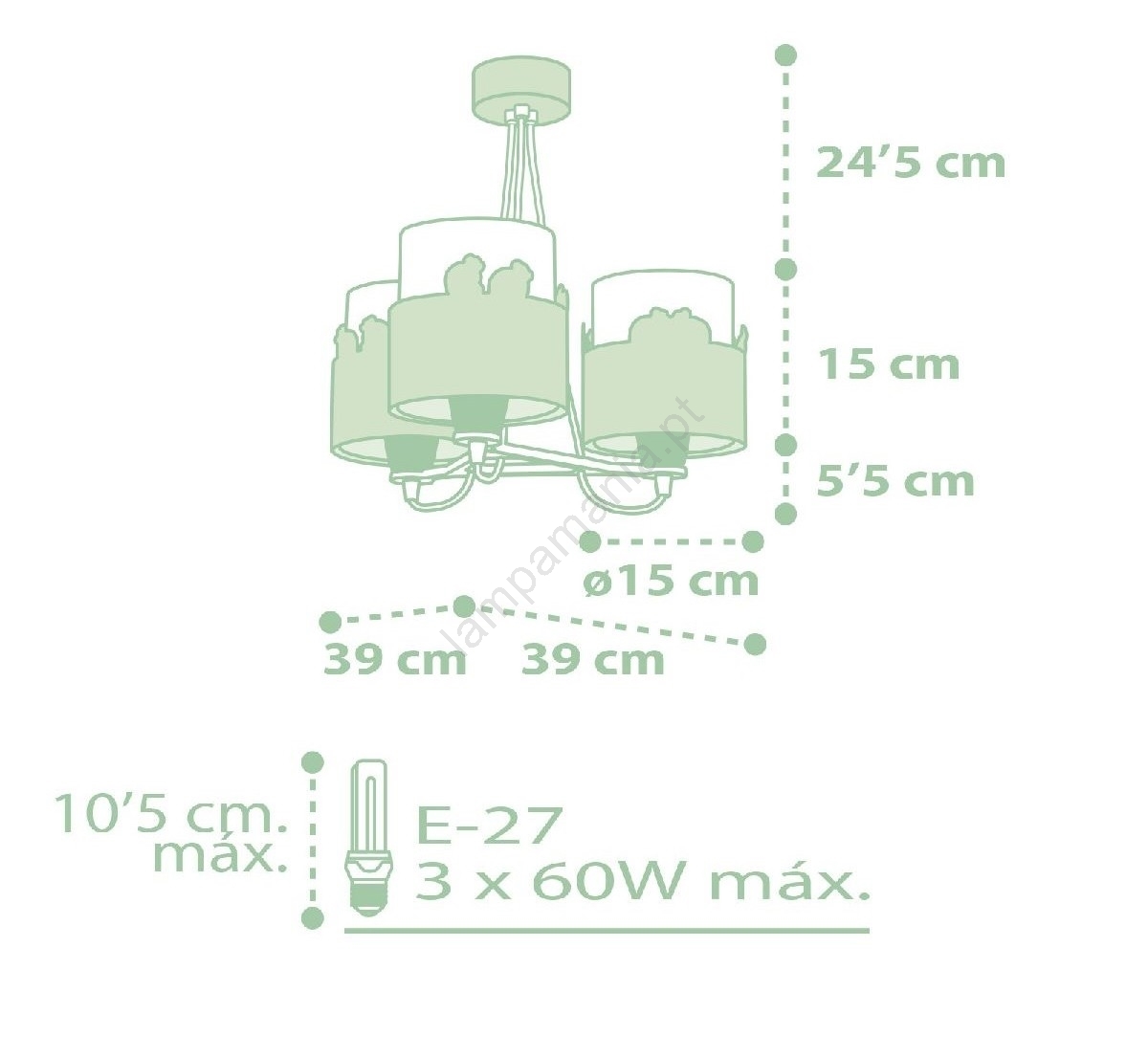 Dalber 61717H - Candelabro de criança SWEET LOVE 3xE27/60W/230V verde