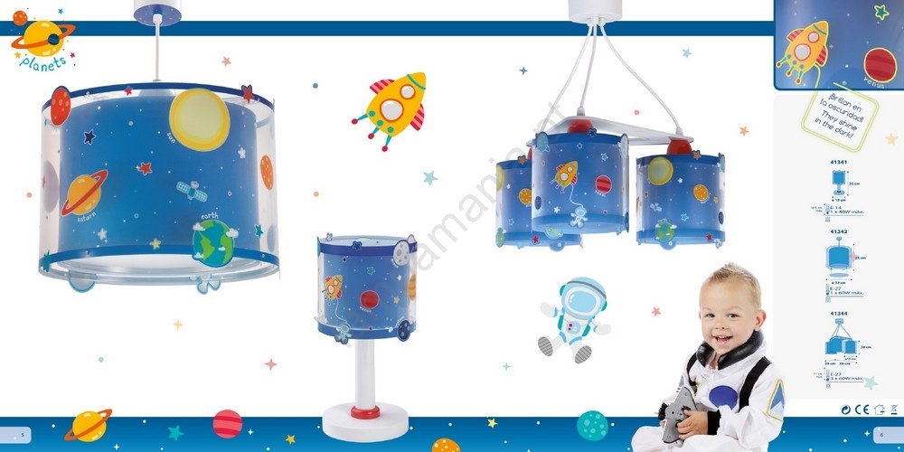 Dalber D-41342 - Candelabro de criança PLANETS 1xE27/60W/230V