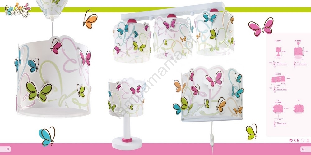 Dalber D-62143 - Luz de teto de criança BORBOLETA 3xE27/60W/230V