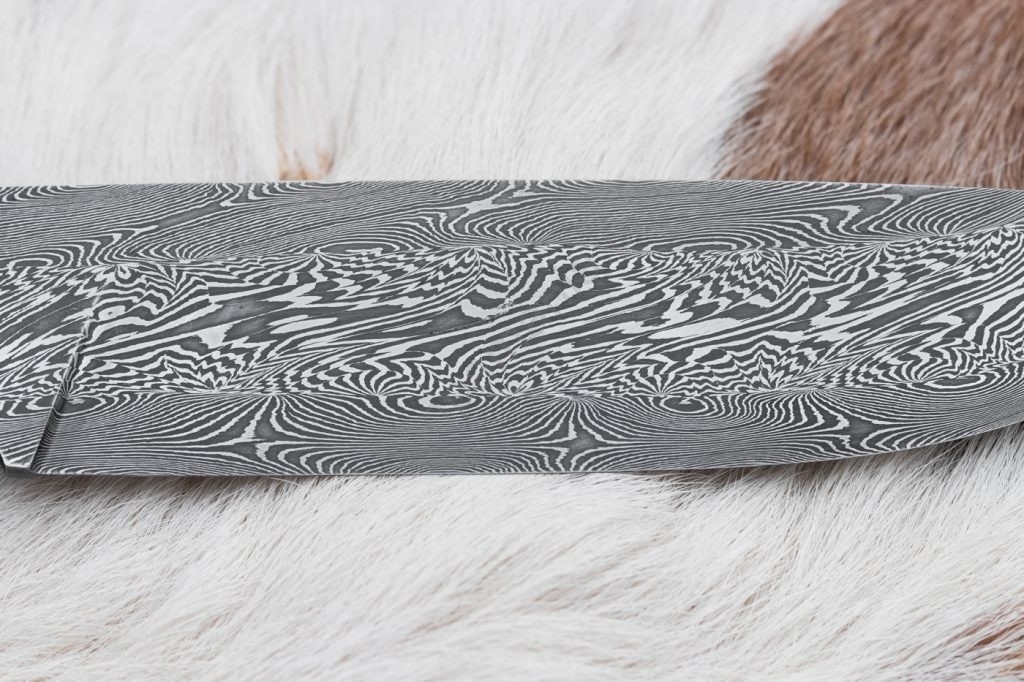 Facas de damasco, frequentemente chamadas também de facas damasqueadas, representam uma obra-prima da arte da ferreiro e da cutelaria. A característica distintiva dessas facas é o padrão decorativo único na lâmina, alcançado pela combinação de dois ou mais tipos de aço com diferentes propriedades. Este processo é realizado por forjamento a altas temperaturas, resultando no que é conhecido como damasco soldado. Facas forjadas dessa maneira são excepcionalmente de alta qualidade. Graças a este processo de fabricação, as facas obtêm o melhor dos aços utilizados. Comumente, combina-se aço duro com alto teor de carbono com aço tenaz, o que confere à faca uma excelente dureza, resistência ao desgaste e à quebra.