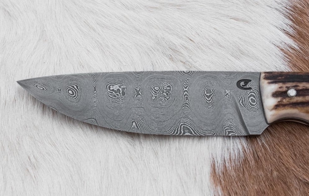 • A lâmina é forjada a partir de mosaicos muito decorativos de aço damasceno.