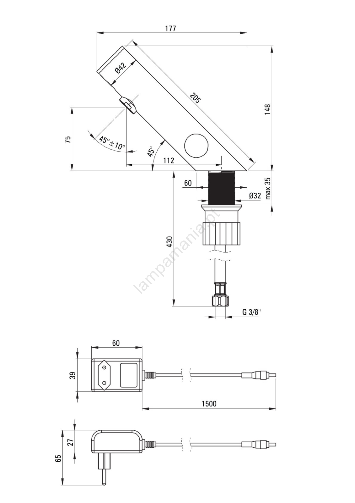 • Comprimento do cabo: 1,5 m.