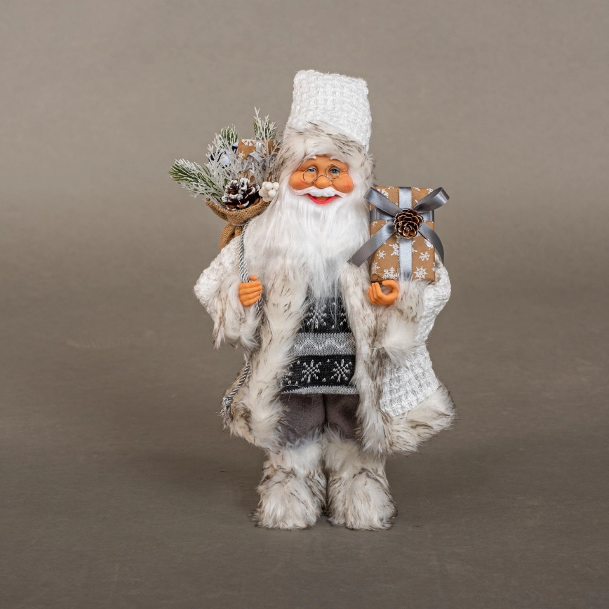 • Figura decorativa do Pai Natal em elegante acabamento cinzento.
