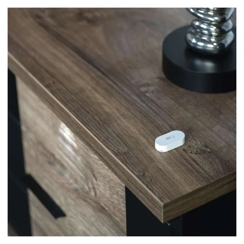 • Design compacto – 26 × 13 × 52 mm, peso de apenas 21 g, instalação na parede ou com fita dupla-face.