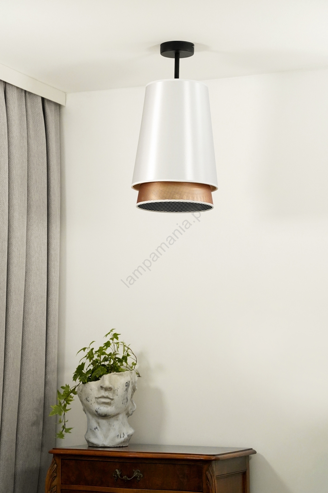 Duolla - Candeeiro integrado BELL SHINY 1xE27/15W/230V diâmetro 25 cm branco/cobre caracteriza-se por um design agradável e funcional.  Uma lâmpada com casquilho E27 é adequada para a iluminação Aqui, pode comprar outras lâmpadas a preços vantajosos. Terá um complemento interessante para a sua casa.