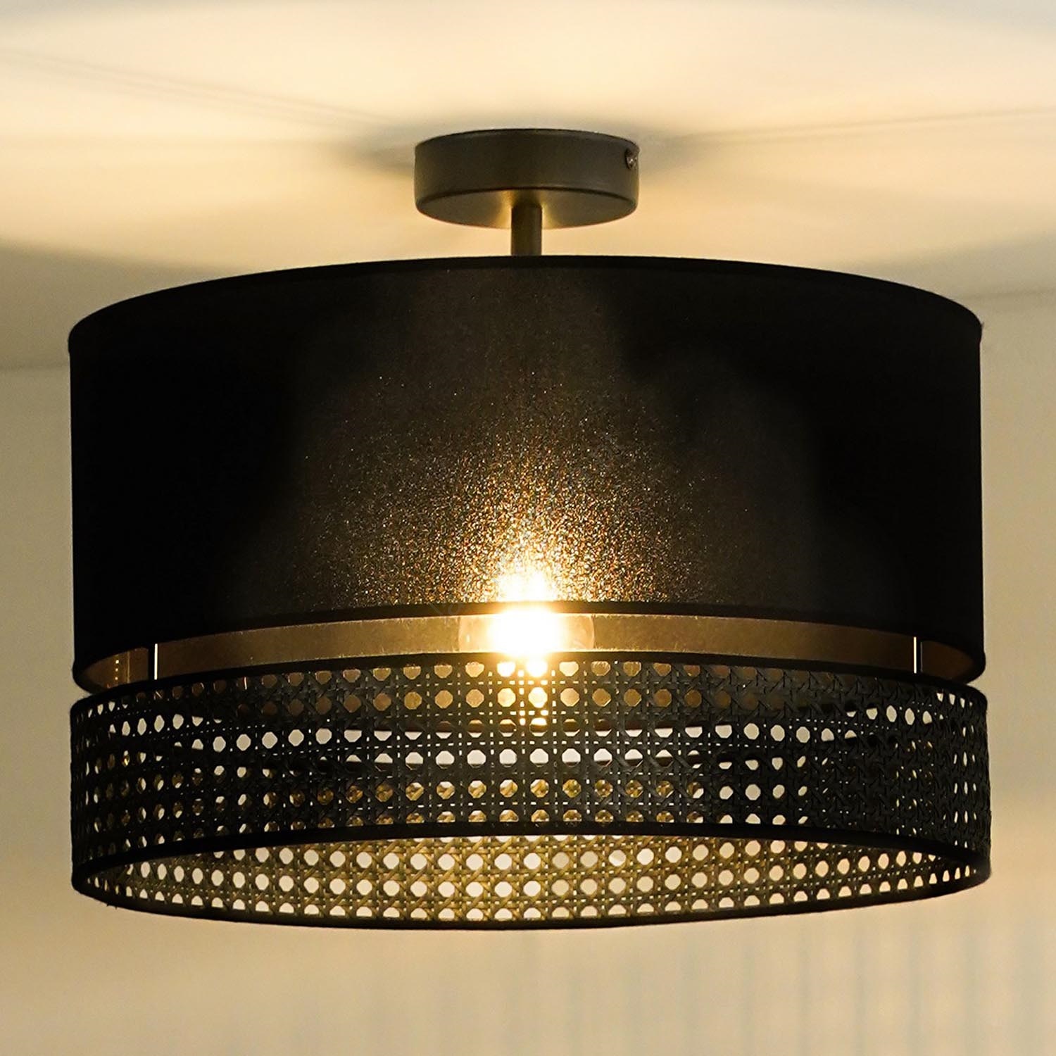 Duolla - Candeeiro integrado DOUBLE RATTAN 1xE27/15W/230V diâmetro 40 cm preto caracteriza-se por um design agradável e funcional.  Uma lâmpada com casquilho E27 é adequada para a iluminação Aqui, pode comprar outras lâmpadas a preços vantajosos. Terá um complemento interessante para a sua casa.