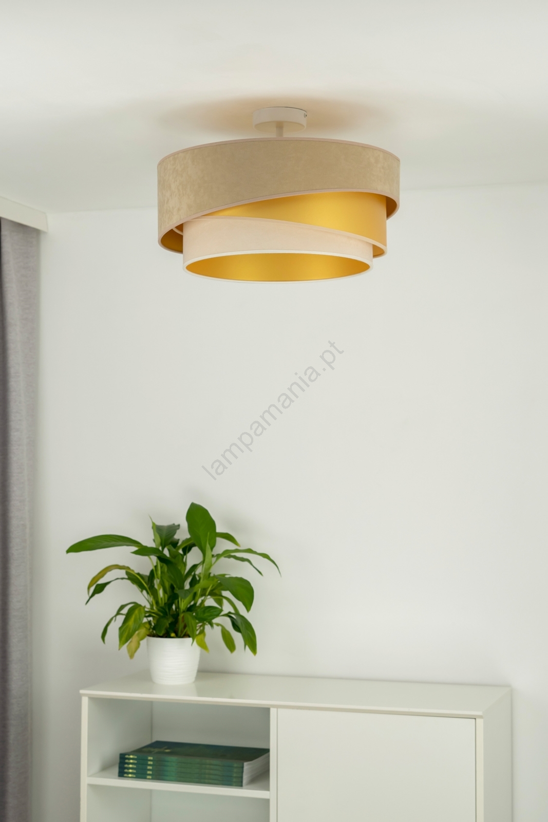 Duolla - Candeeiro integrado KOBO 1xE27/15W/230V diâmetro 45 cm bege/dourado/creme caracteriza-se por um design agradável e funcional.  Uma lâmpada com casquilho E27 é adequada para a iluminação Aqui, pode comprar outras lâmpadas a preços vantajosos. Terá um complemento interessante para a sua casa.
