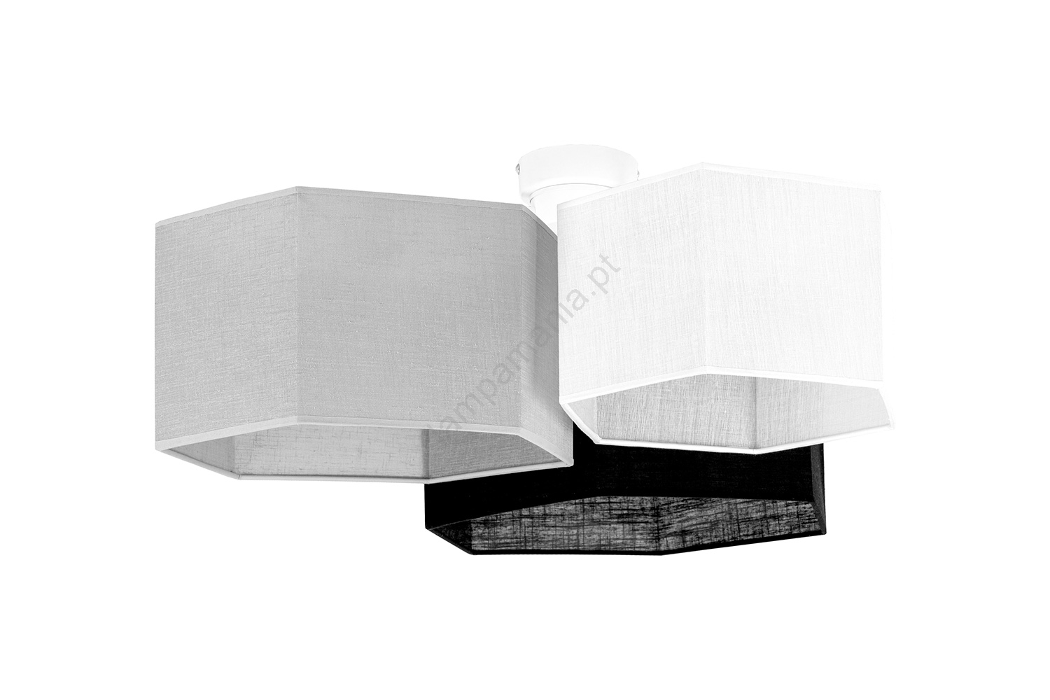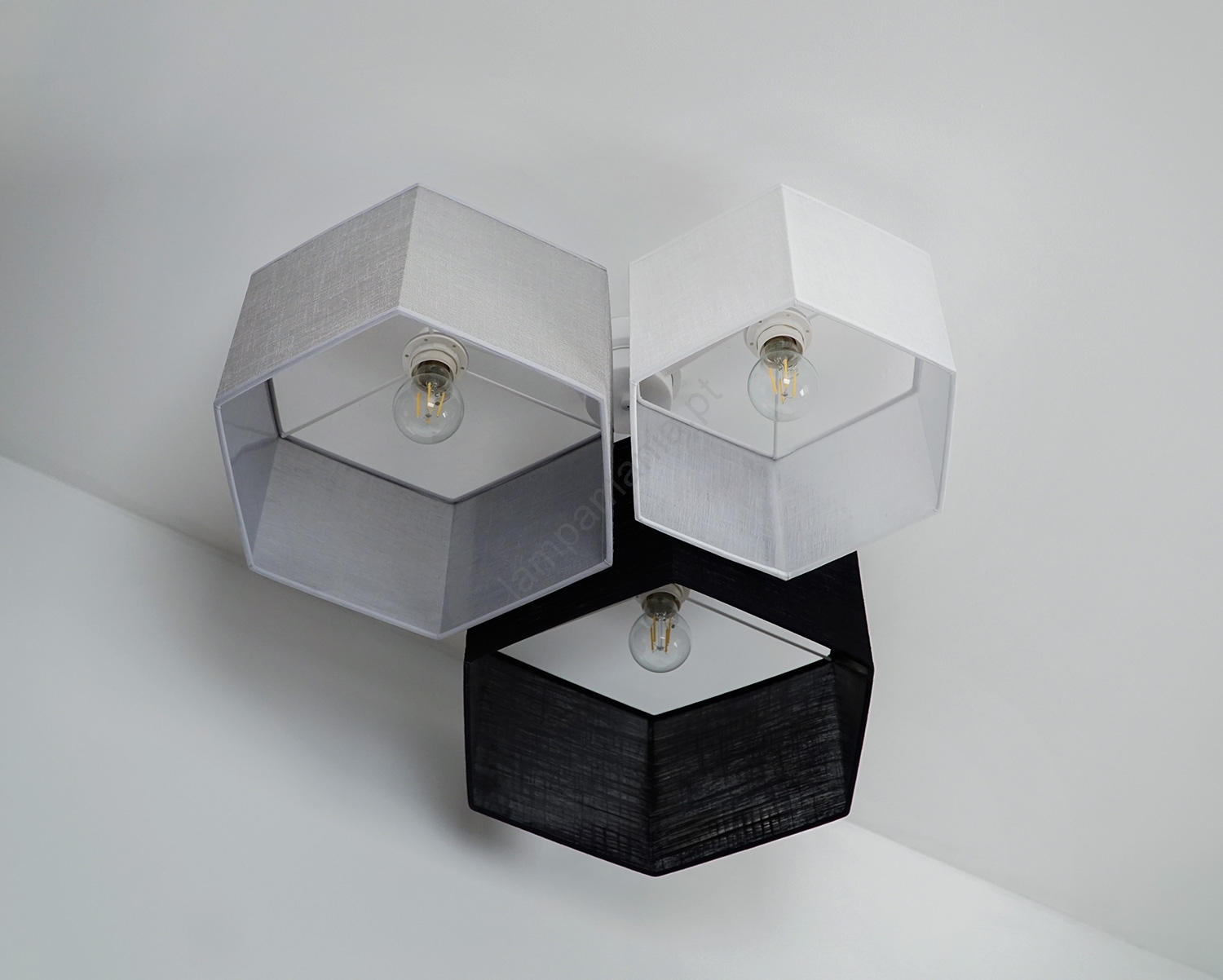 Duolla - Candeeiro integrado ROLLER TRIO HEX 3xE27/15W/230V preto/cinzento/branco caracteriza-se por um design agradável e funcional.  Uma lâmpada com casquilho E27 é adequada para a iluminação Aqui, pode comprar outras lâmpadas a preços vantajosos. Terá um complemento interessante para a sua casa.