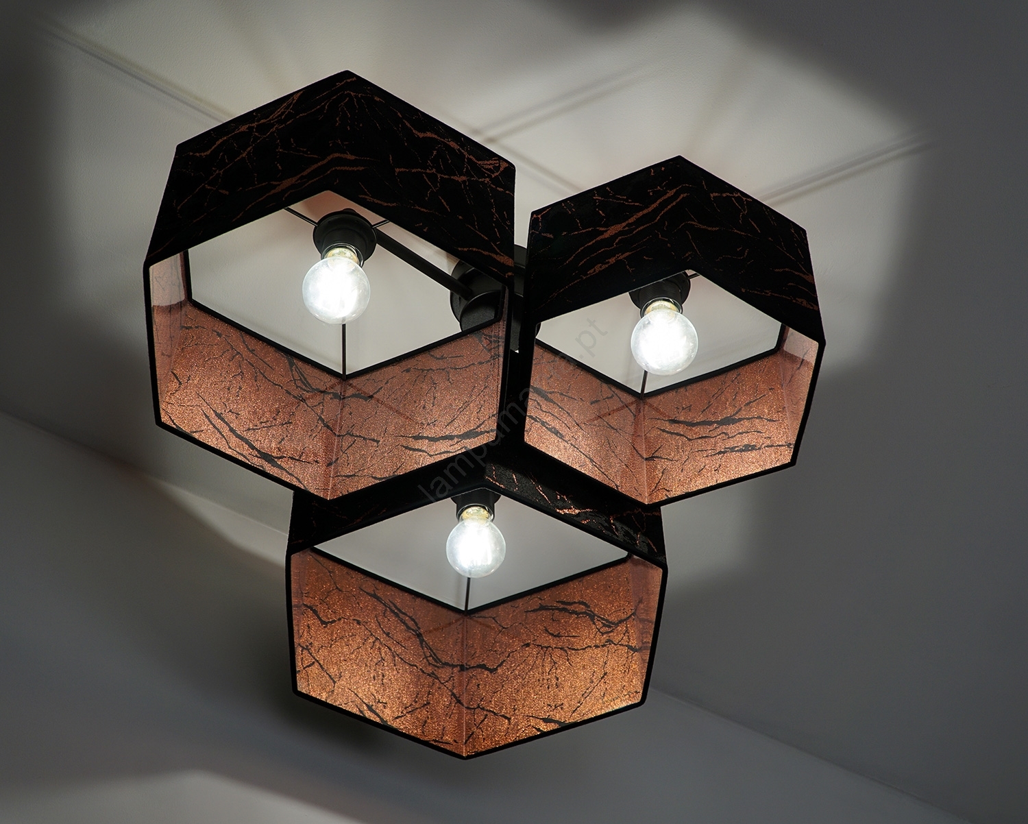 Duolla - Candeeiro integrado ROLLER TRIO HEX 3xE27/15W/230V preto/cobre caracteriza-se por um design agradável e funcional.  Uma lâmpada com casquilho E27 é adequada para a iluminação Aqui, pode comprar outras lâmpadas a preços vantajosos. Terá um complemento interessante para a sua casa.
