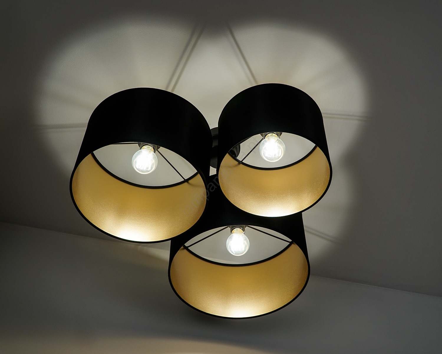 Duolla - Candeeiro integrado ROLLER TRIO SHINY 3xE27/15W/230V preto/dourada caracteriza-se por um design agradável e funcional.  Uma lâmpada com casquilho E27 é adequada para a iluminação Aqui, pode comprar outras lâmpadas a preços vantajosos. Terá um complemento interessante para a sua casa.