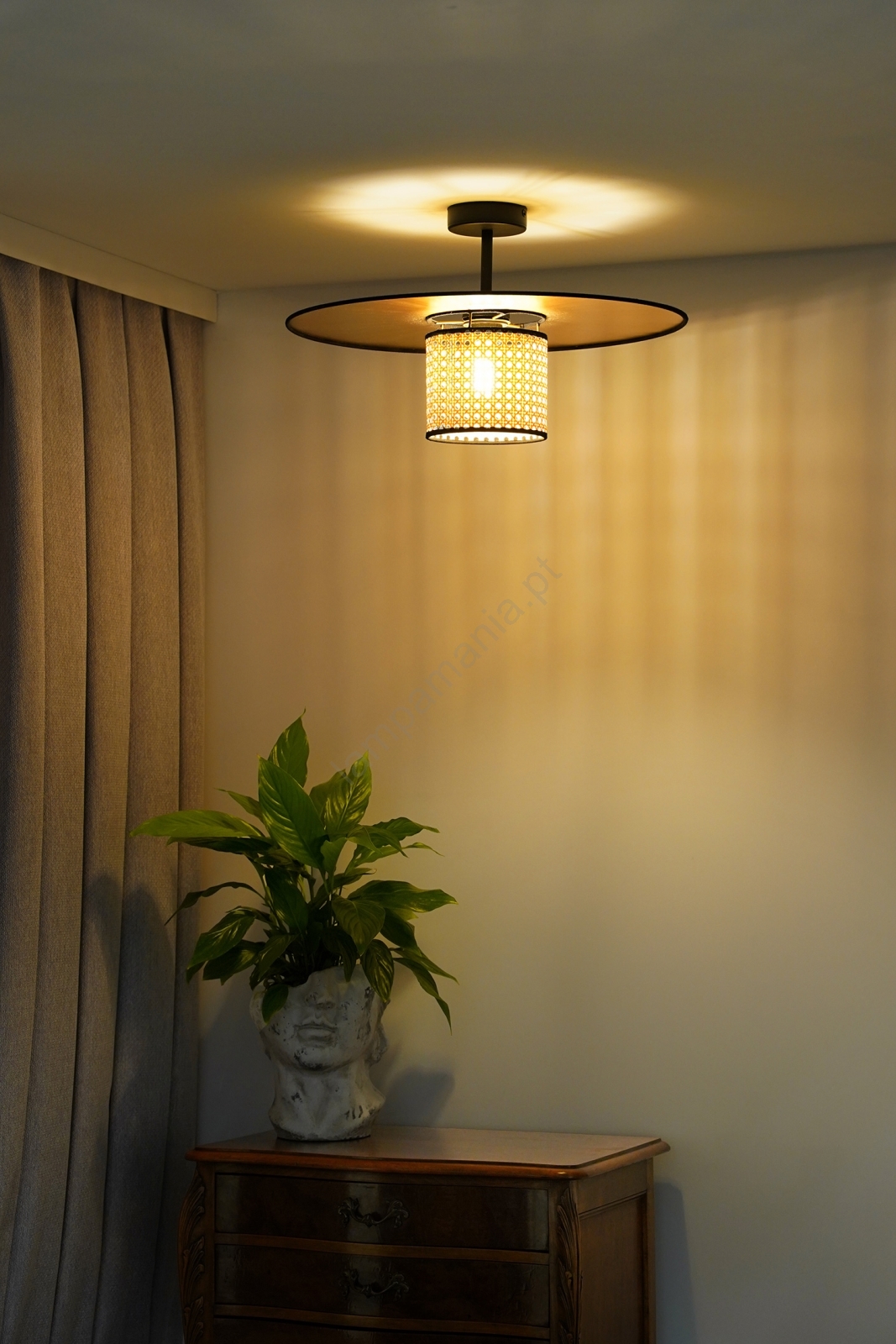 Duolla - Candeeiro integrado TOKYO RATTAN 1xE27/15W/230V diâmetro 50 cm dourado/vime caracteriza-se por um design agradável e funcional.  Uma lâmpada com casquilho E27 é adequada para a iluminação Aqui, pode comprar outras lâmpadas a preços vantajosos. Terá um complemento interessante para a sua casa.