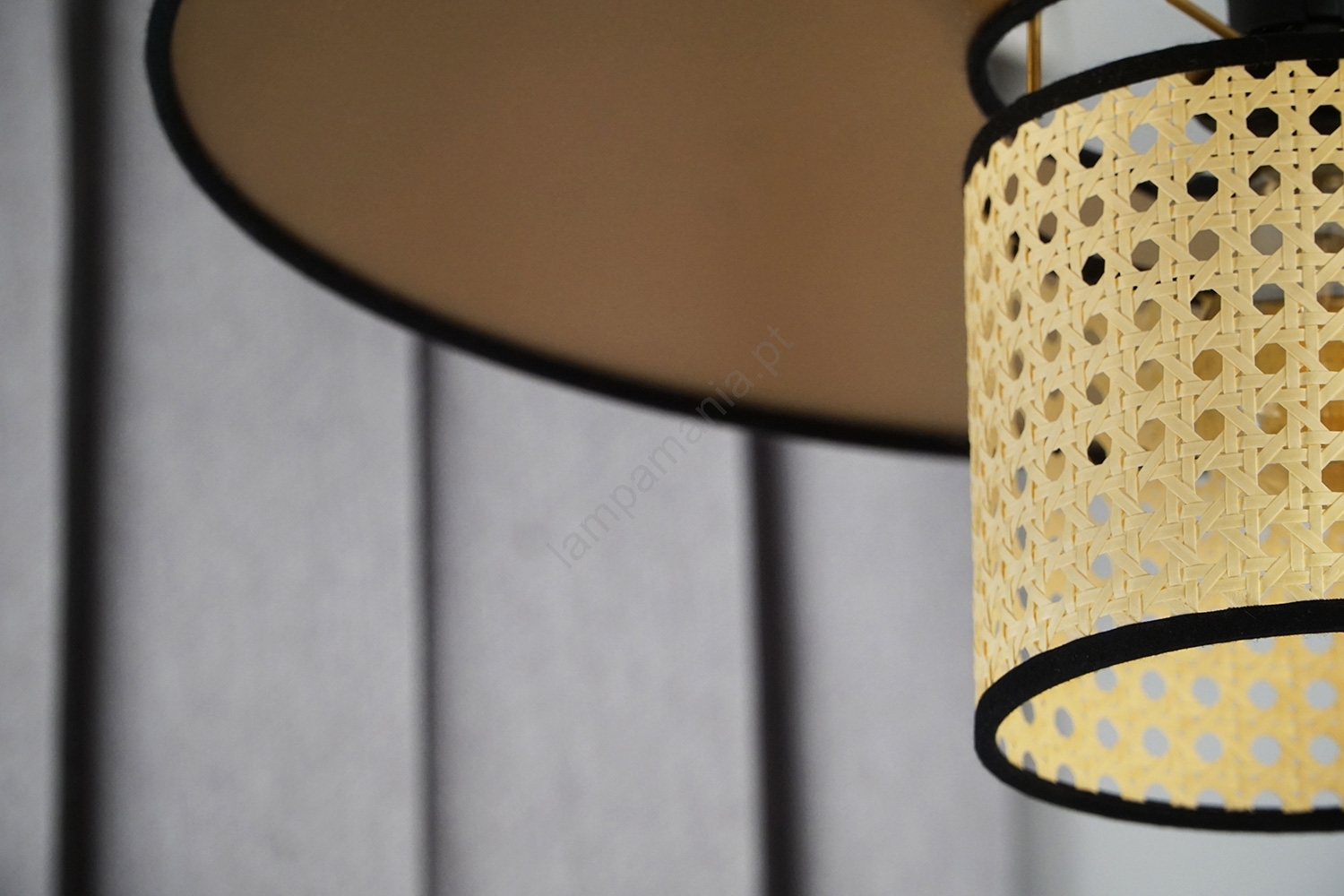 • Duolla - Candeeiro integrado TOKYO RATTAN 1xE27/15W/230V diâmetro 50 cm dourado/preto