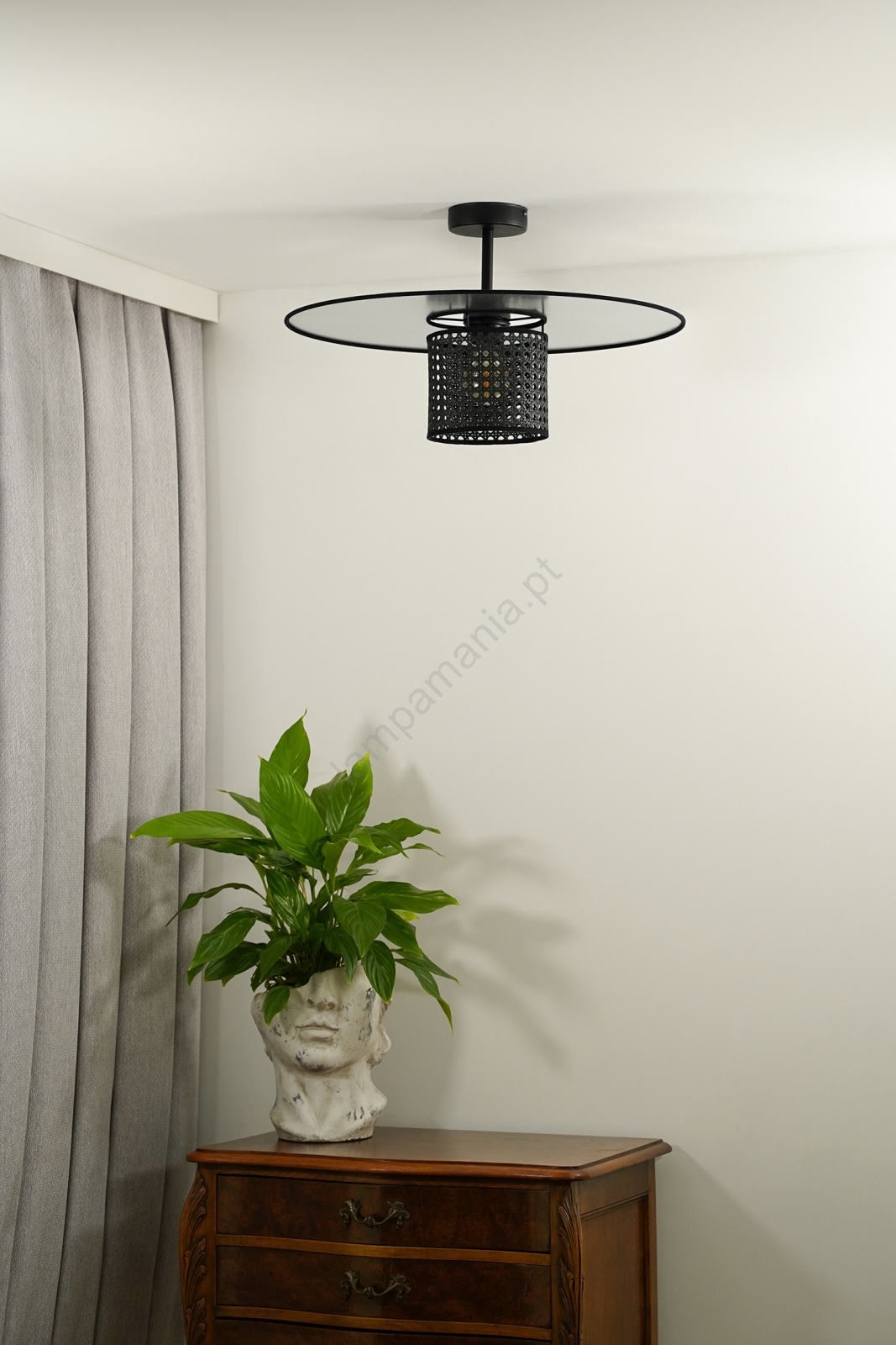 • Duolla - Candeeiro integrado TOKYO RATTAN 1xE27/15W/230V diâmetro 50 cm preto/prateado