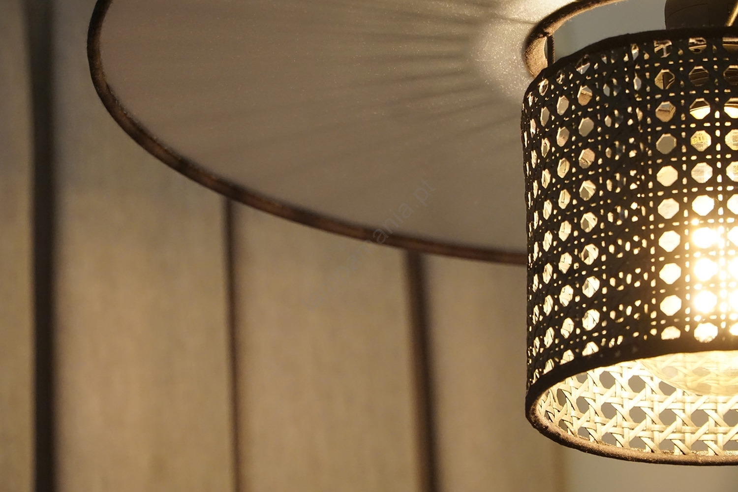 Duolla - Candeeiro integrado TOKYO RATTAN 1xE27/15W/230V diâmetro 50 cm preto/prateado caracteriza-se por um design agradável e funcional.  Uma lâmpada com casquilho E27 é adequada para a iluminação Aqui, pode comprar outras lâmpadas a preços vantajosos. Terá um complemento interessante para a sua casa.