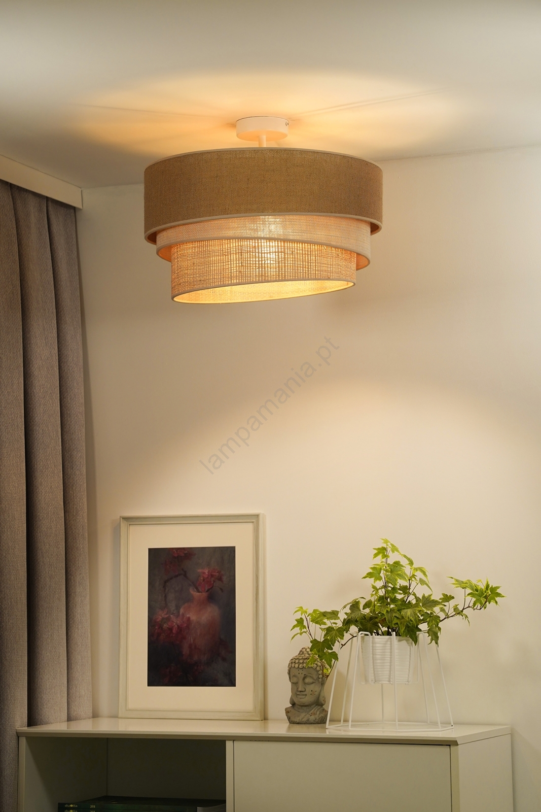 Duolla - Candeeiro integrado YUTE TRIO 3xE27/15W/230V diâmetro 60 cm castanho/cinzento/bege caracteriza-se por um design agradável e funcional.  Uma lâmpada com casquilho E27 é adequada para a iluminação Aqui, pode comprar outras lâmpadas a preços vantajosos. Terá um complemento interessante para a sua casa.