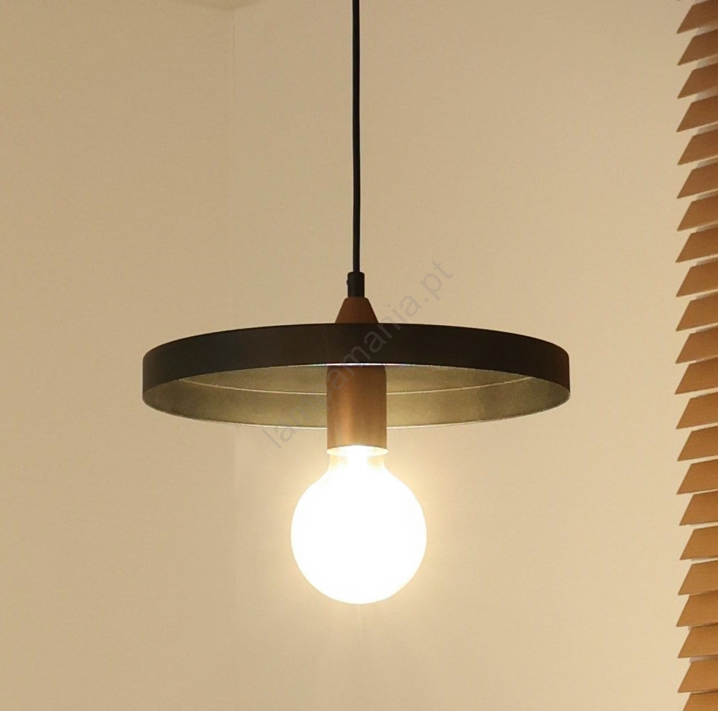Duolla - Candeeiro pendente com cabo IRONLINE 1xE27/15W/230V Ø 30 cm preto/cobre caracteriza-se por um design agradável e funcional.  Uma lâmpada com casquilho E27 é adequada para a iluminação Aqui, pode comprar outras lâmpadas a preços vantajosos. Terá um complemento interessante para a sua casa.