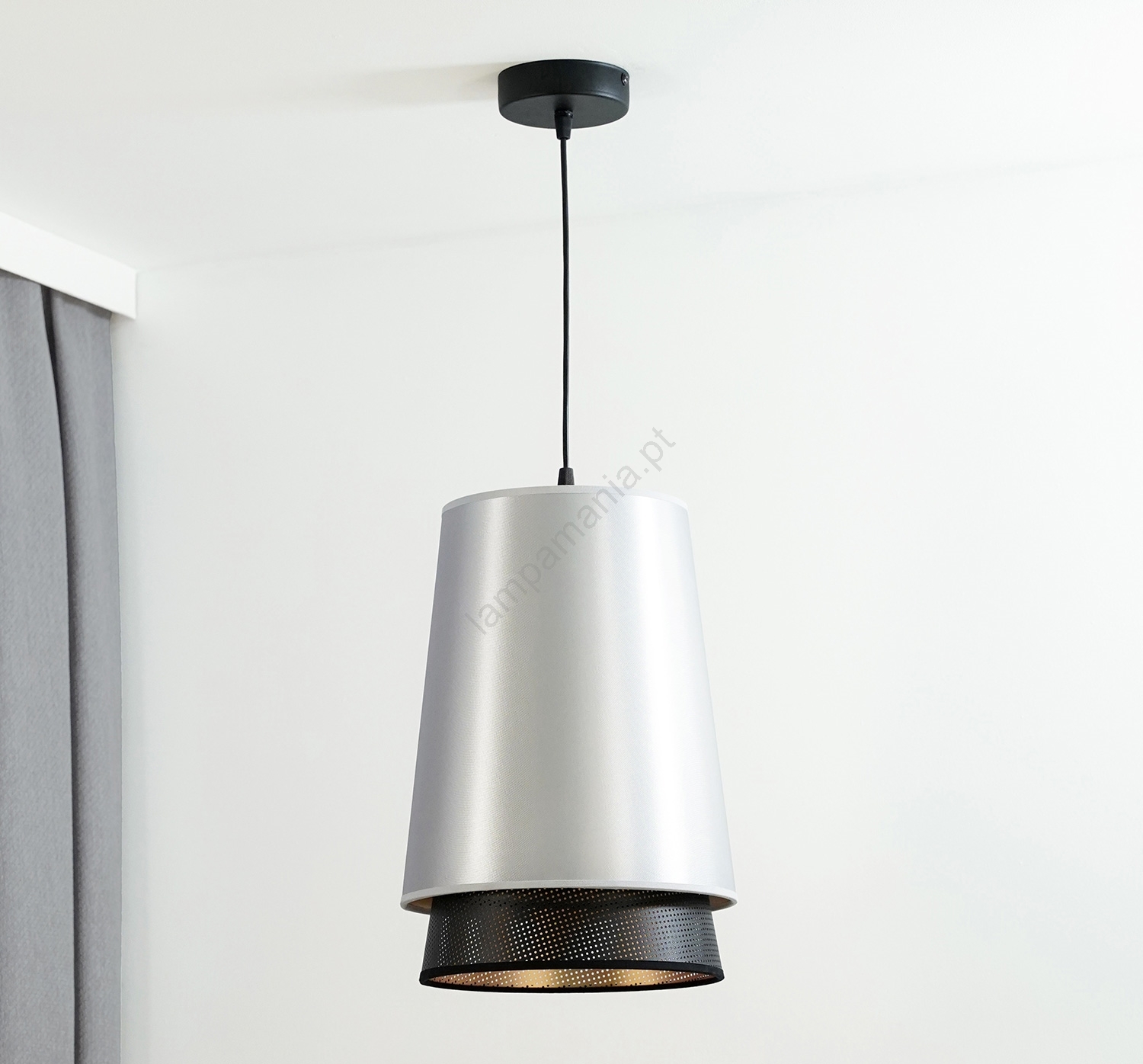 Duolla - Candeeiro suspenso BELL SHINY 1xE27/15W/230V diâmetro 25 cm prateado/preto caracteriza-se por um design agradável e funcional.  Uma lâmpada com casquilho E27 é adequada para a iluminação Aqui, pode comprar outras lâmpadas a preços vantajosos. Terá um complemento interessante para a sua casa.
