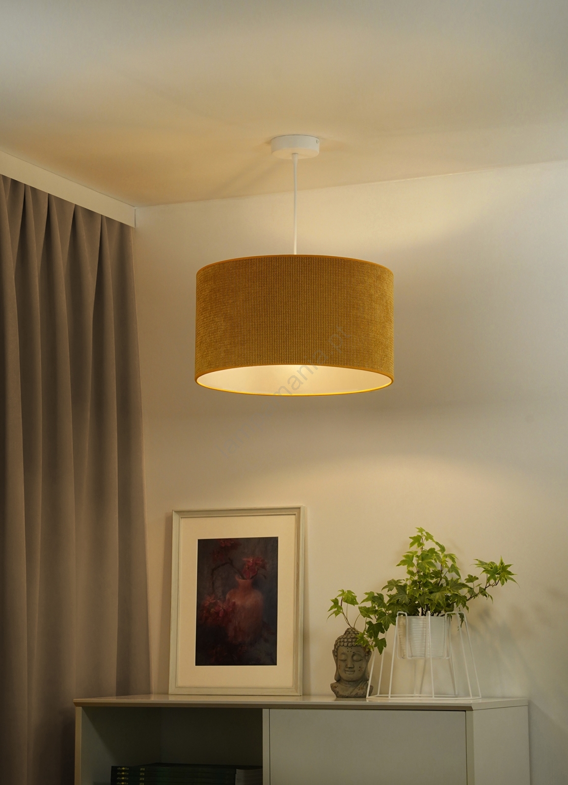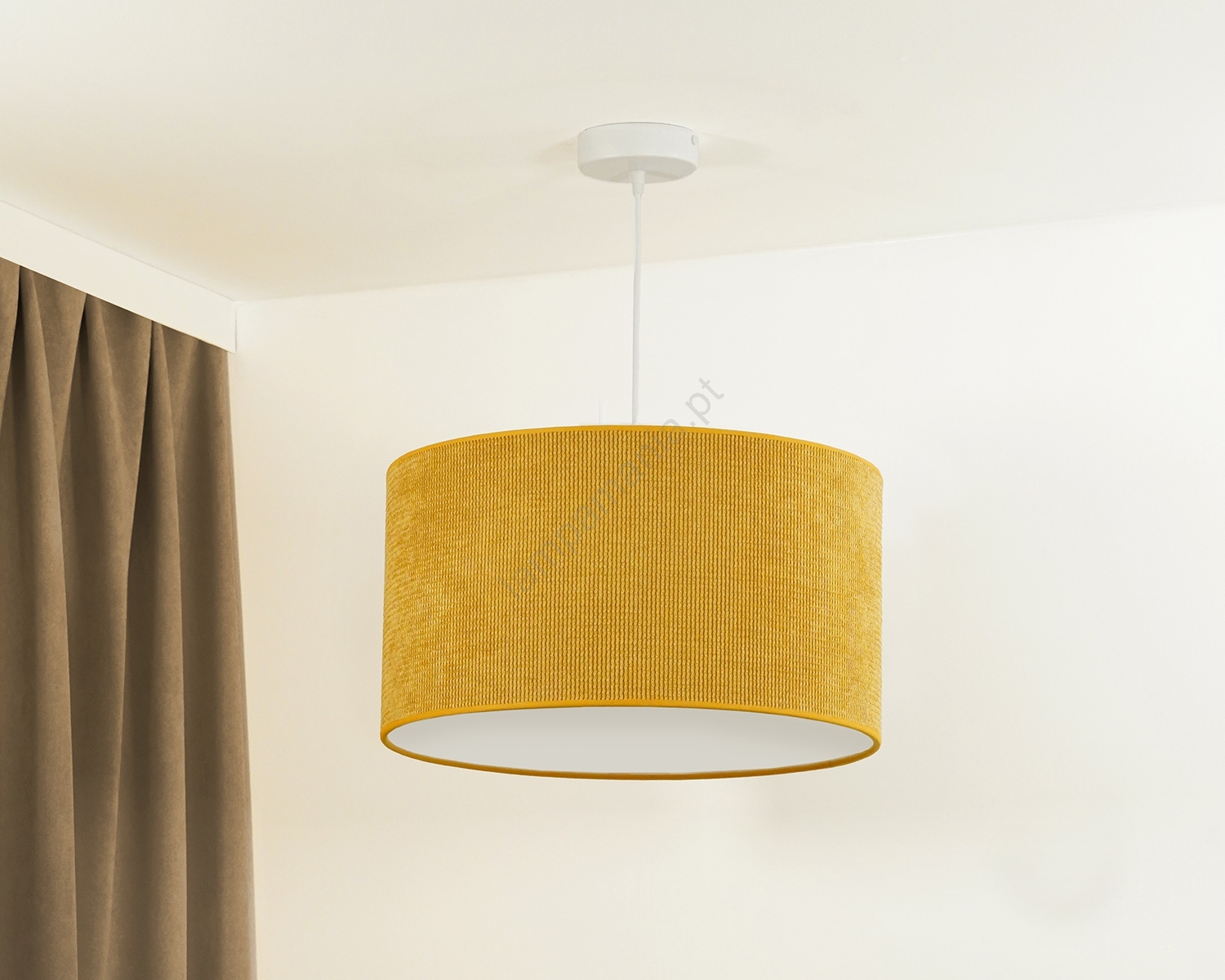 Duolla - Candeeiro suspenso CORDUROY 1xE27/15W/230V diâmetro 40 cm amarelo caracteriza-se por um design agradável e funcional.  Uma lâmpada com casquilho E27 é adequada para a iluminação Aqui, pode comprar outras lâmpadas a preços vantajosos. Terá um complemento interessante para a sua casa.