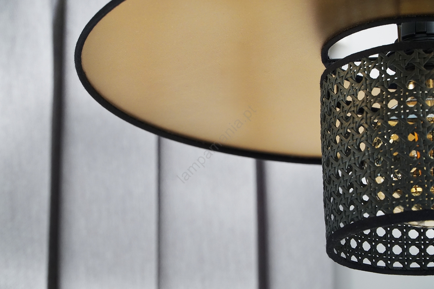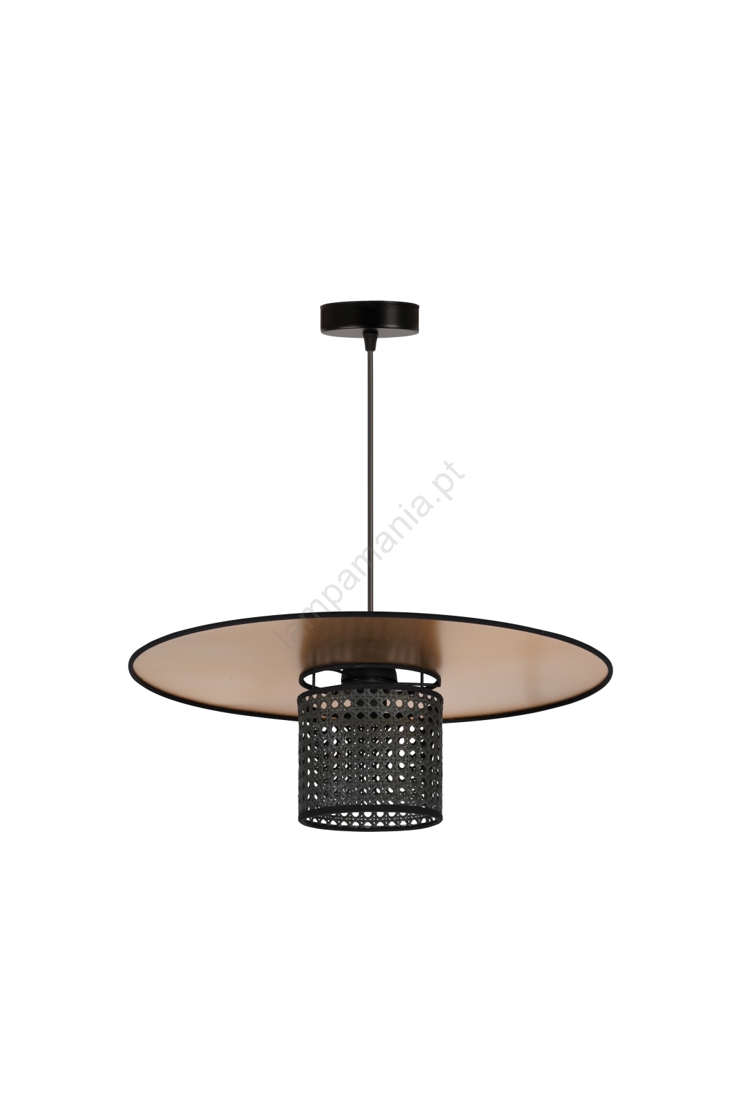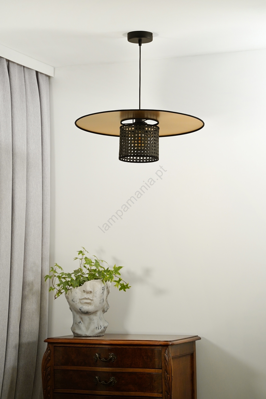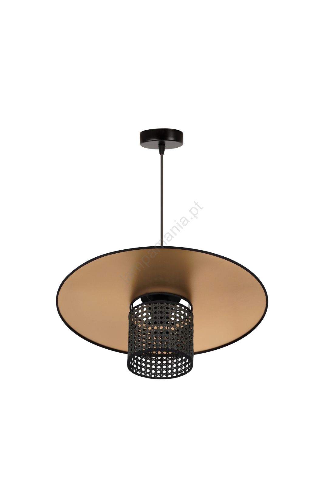 Duolla - Candeeiro suspenso TOKYO RATTAN 1xE27/15W/230V diâmetro 50 cm dourado/preto caracteriza-se por um design agradável e funcional.  Uma lâmpada com casquilho E27 é adequada para a iluminação Aqui, pode comprar outras lâmpadas a preços vantajosos. Terá um complemento interessante para a sua casa.