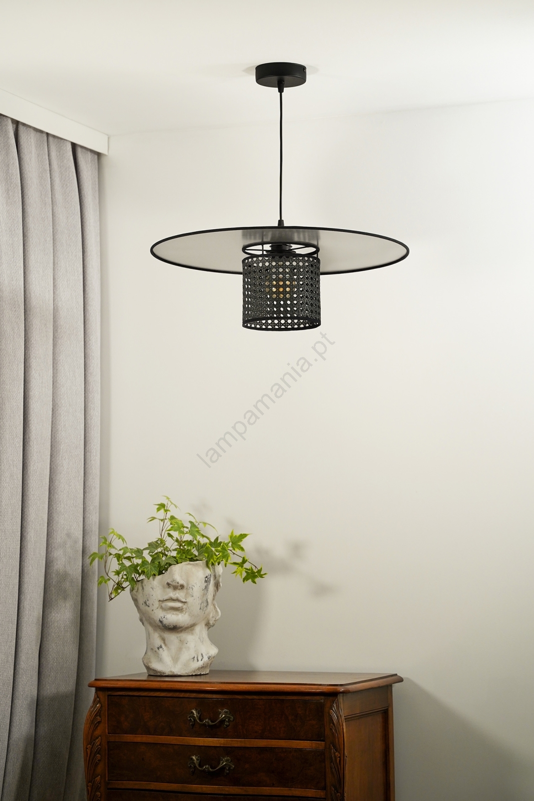 Duolla - Candeeiro suspenso TOKYO RATTAN 1xE27/15W/230V diâmetro 50 cm preto/prateado caracteriza-se por um design agradável e funcional.  Uma lâmpada com casquilho E27 é adequada para a iluminação Aqui, pode comprar outras lâmpadas a preços vantajosos. Terá um complemento interessante para a sua casa.