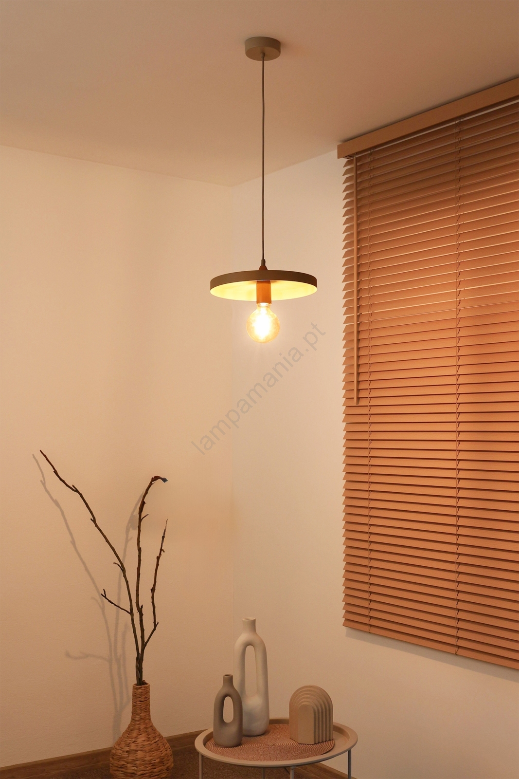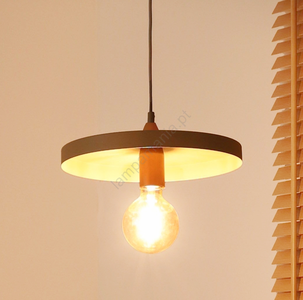 Duolla - Pendente suspenso por cabo IRONLINE 1xE27/15W/230V Ø 30 cm bege/cobre caracteriza-se por um design agradável e funcional.  Uma lâmpada com casquilho E27 é adequada para a iluminação Aqui, pode comprar outras lâmpadas a preços vantajosos. Terá um complemento interessante para a sua casa.