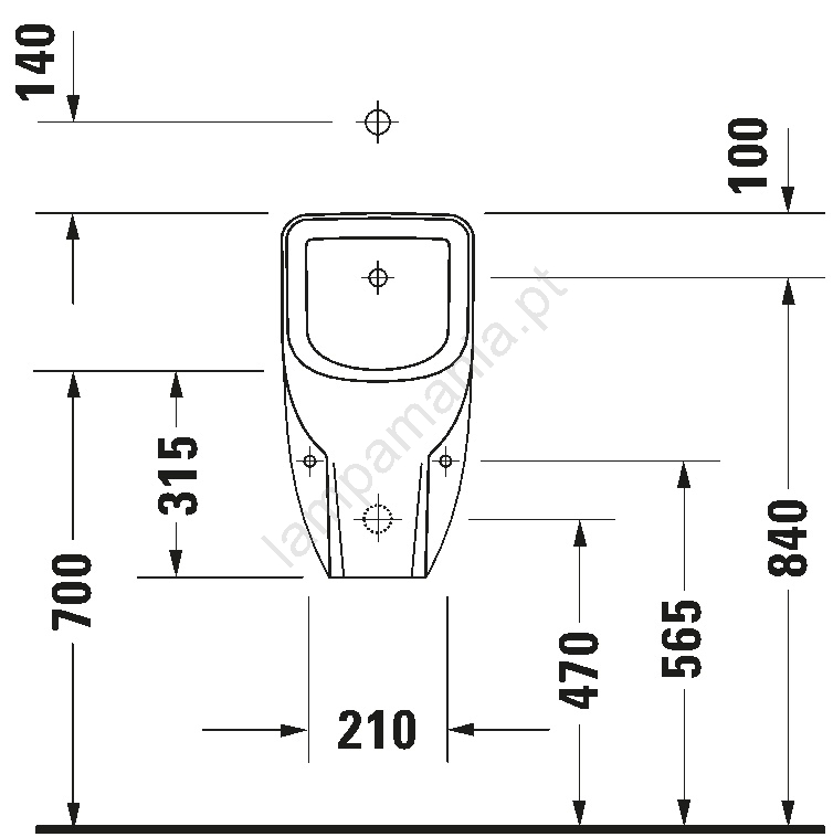 Duravit 828300000 - Pisoár sem aro D-CODE, entrada superior, saída traseira, cerâmica/branco brilhante
