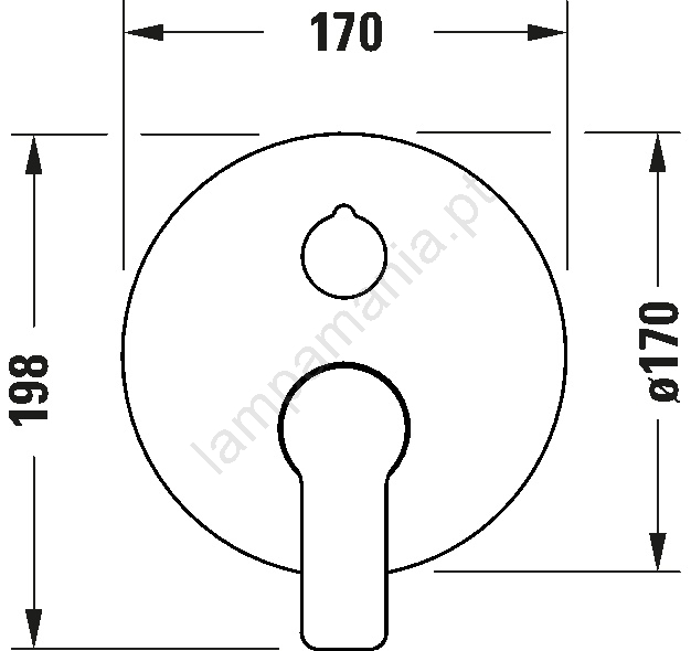 • O design da misturadora é complementado por uma roseta circular de cobertura com aproximadamente 170 mm de diâmetro, que realça o aspeto limpo e moderno.