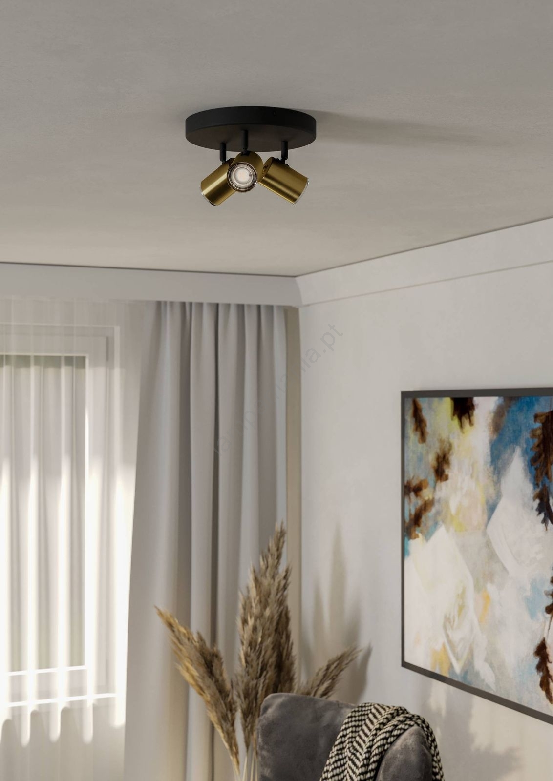 • Eglo - Candeeiro de focos para casa de banho 3xGU10/5W/230V Ø 25 cm IP44 preto/dourado