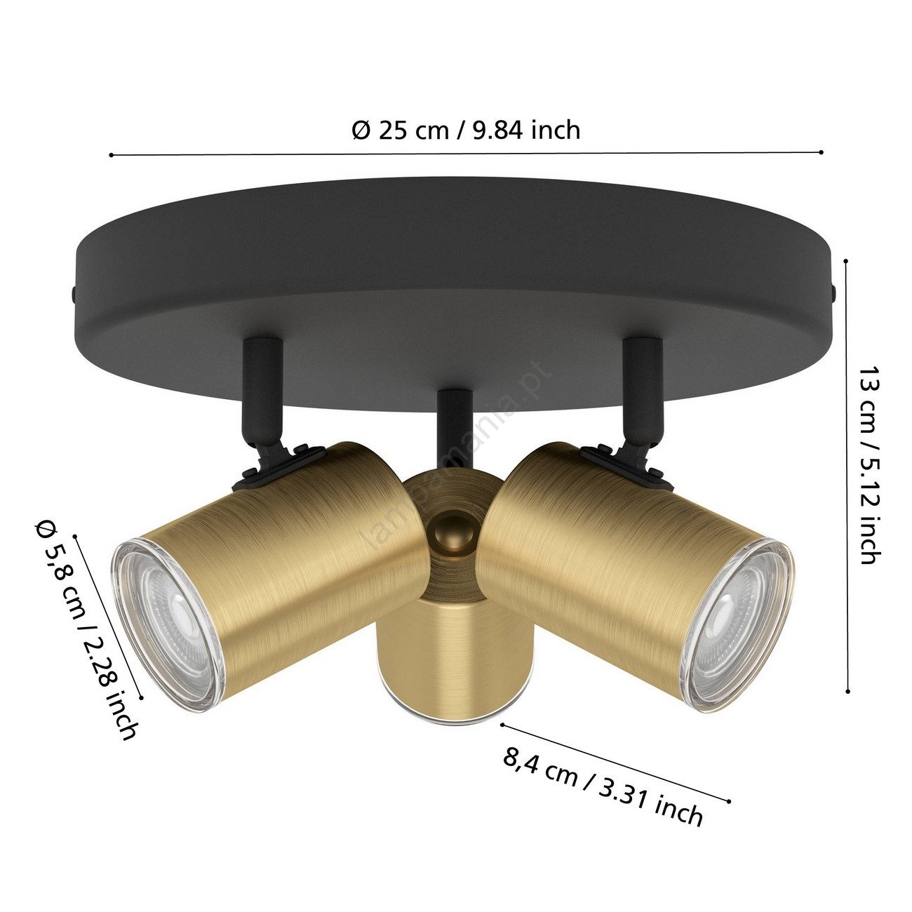 Eglo - Candeeiro de focos para casa de banho 3xGU10/5W/230V Ø 25 cm IP44 preto/dourado