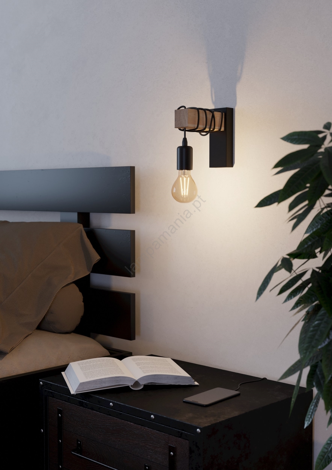 Eglo - Luz de parede TOWNSHEND 1xE27/10W/230V caracteriza-se por um design agradável e funcional.  Uma lâmpada com casquilho E27 é adequada para a iluminação Aqui, pode comprar outras lâmpadas a preços vantajosos. Terá um complemento interessante para a sua casa.