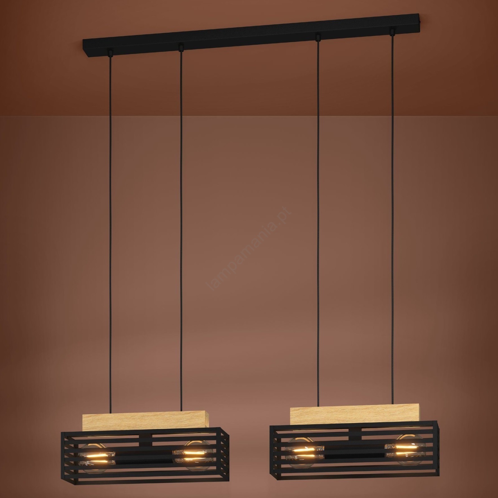 Eglo - Candeeiro suspenso 4xE27/40W/230V preto/castanho caracteriza-se por um design agradável e funcional.  Uma lâmpada com casquilho E27 é adequada para a iluminação Aqui, pode comprar outras lâmpadas a preços vantajosos. Terá um complemento interessante para a sua casa.