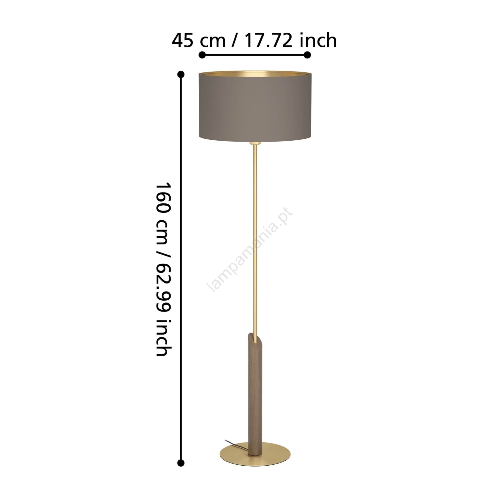 Eglo - Candeeiro de chão 1xE27/40W/230V castanho/dourado caracteriza-se por um design agradável e funcional.  Uma lâmpada com casquilho E27 é adequada para a iluminação Aqui, pode comprar outras lâmpadas a preços vantajosos. Terá um complemento interessante para a sua casa.