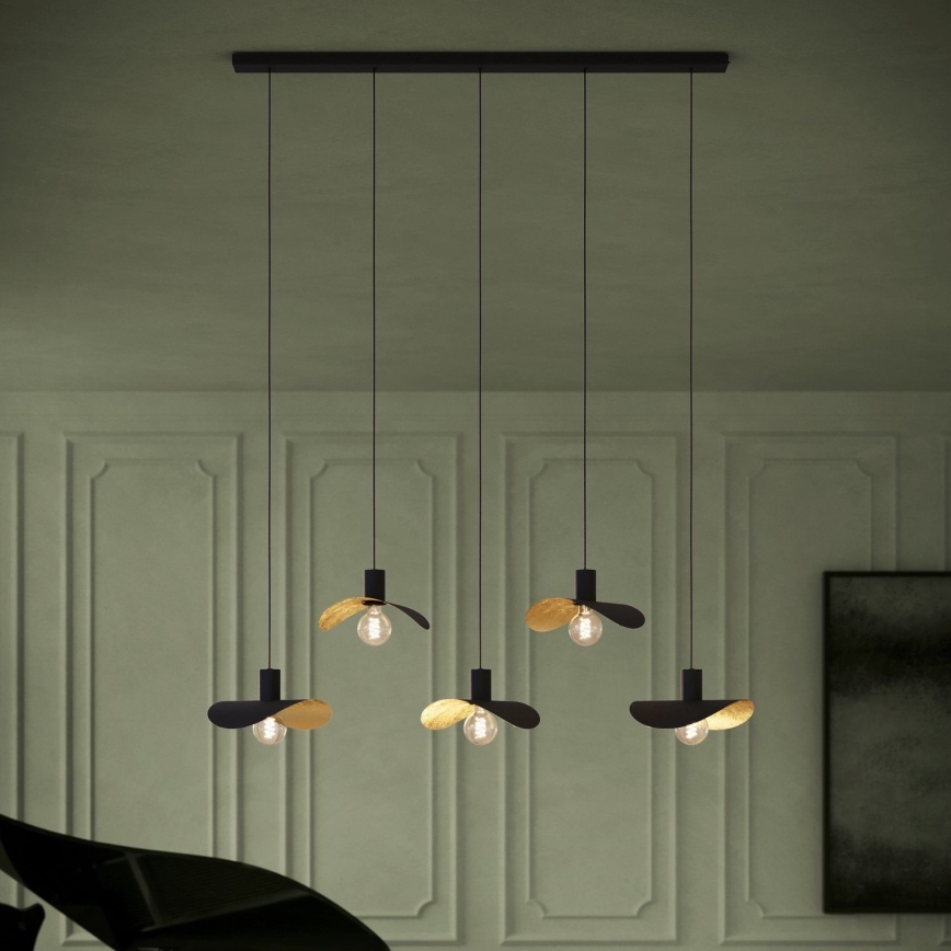 Eglo - Candeeiro suspenso 5xE27/40W/230V preto/dourado