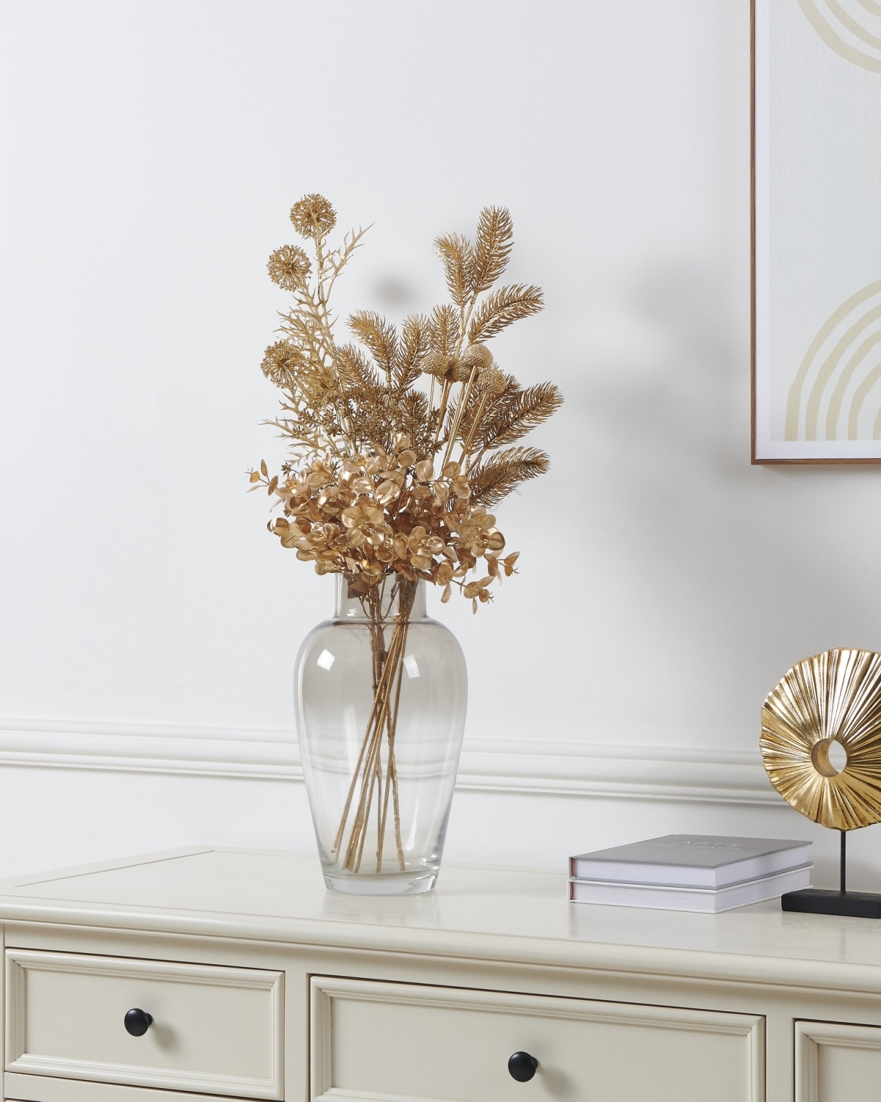 Eglo - Flor artificial 58,5 cm dourado vai impressioná-lo não só pela sua aparência, mas também pelo seu design de alta qualidade. Graças ao seu design, adapta-se a qualquer interior, pelo que será um ótimo complemento para qualquer casa ou apartamento. Existem várias versões disponíveis para melhor se adaptar às suas necessidades. O material de alta qualidade garante uma longa vida útil. Pode escolher mais aqui Plantas e flores decorativas