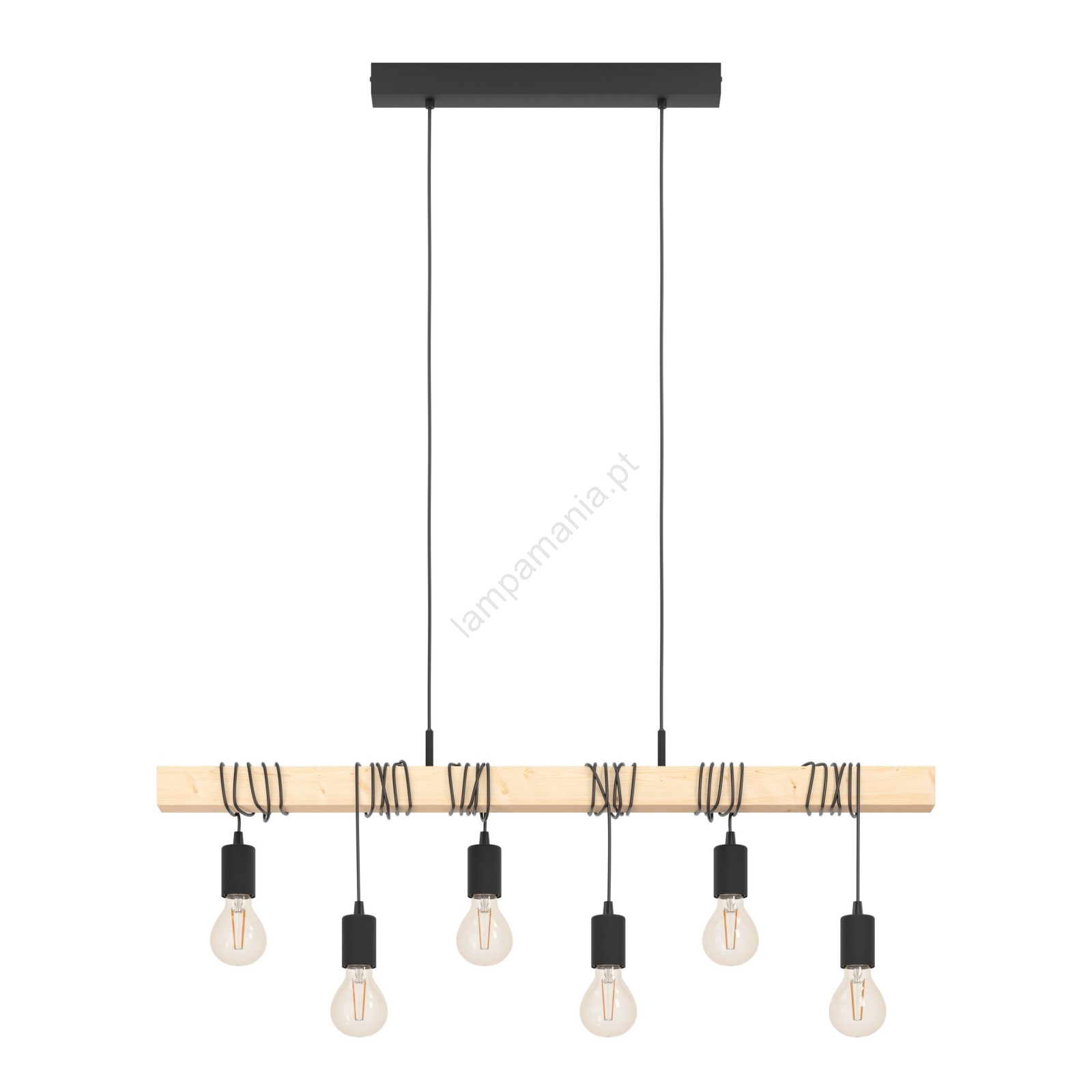Eglo - Lustre suspenso em cabo TOWNSHEND 6xE27/60W/230V caracteriza-se por um design agradável e funcional.  Uma lâmpada com casquilho E27 é adequada para a iluminação Aqui, pode comprar outras lâmpadas a preços vantajosos. Terá um complemento interessante para a sua casa.