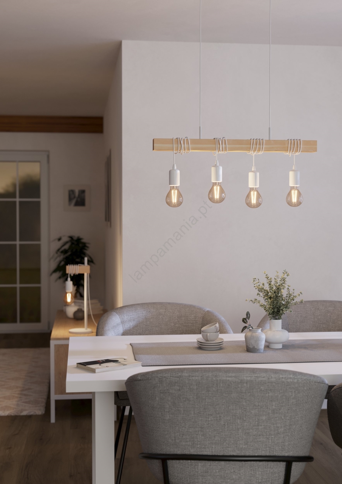 Eglo - Lustre suspenso TOWNSHEND 4xE27/60W/230V caracteriza-se por um design agradável e funcional.  Uma lâmpada com casquilho E27 é adequada para a iluminação Aqui, pode comprar outras lâmpadas a preços vantajosos. Terá um complemento interessante para a sua casa.