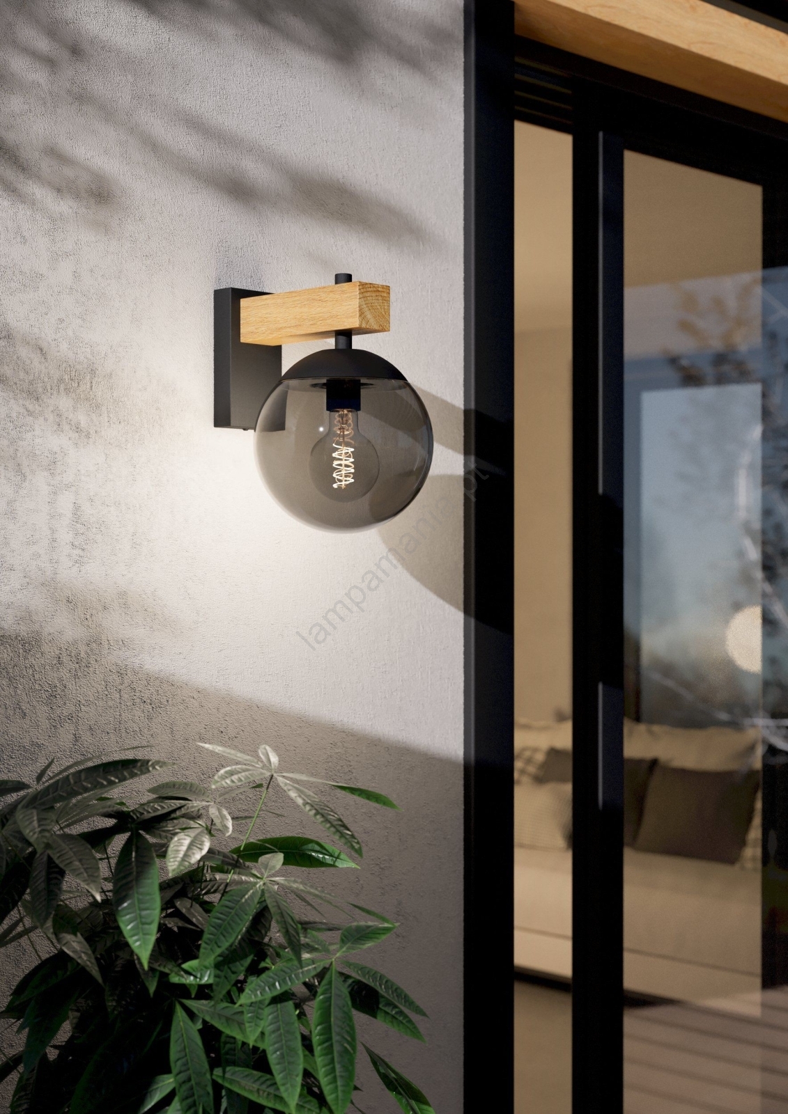 Eglo - Iluminação de parede exterior 1xE27/40W/230V preto/madeira IP44 caracteriza-se por um design agradável e funcional.  Uma lâmpada com casquilho E27 é adequada para a iluminação Aqui, pode comprar outras lâmpadas a preços vantajosos. Terá um complemento interessante para a sua casa.