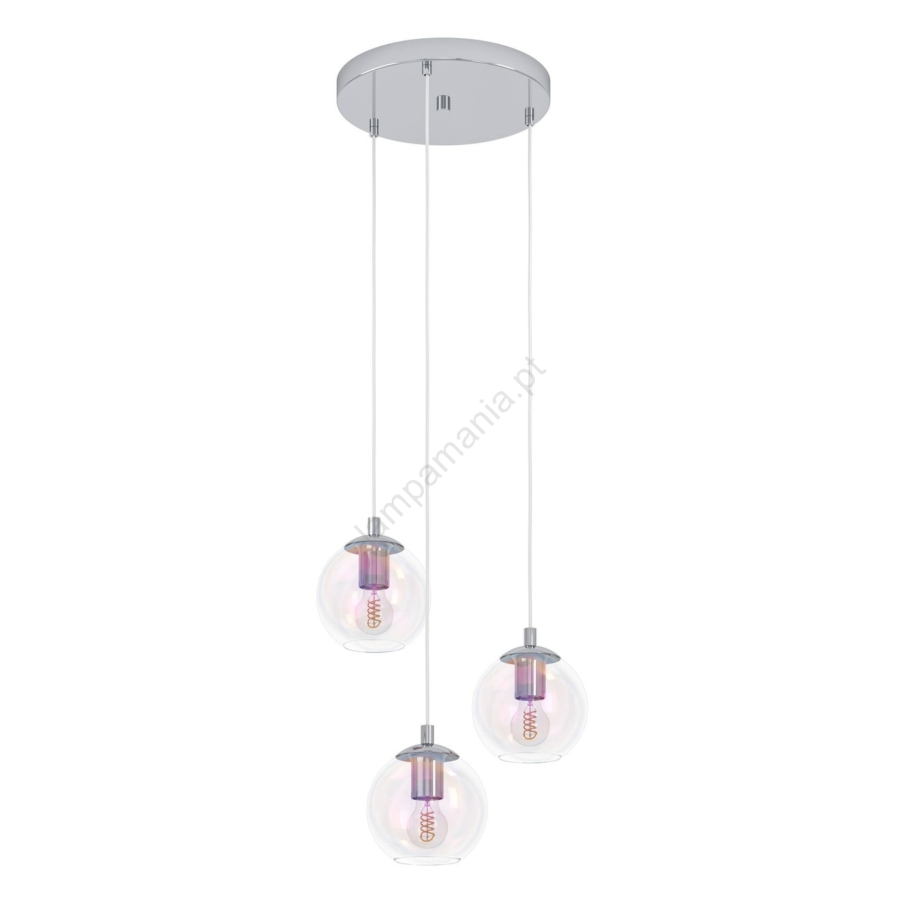 Eglo - Lustre pendente com cabo 3xE27/60W/230V cromado brilhante caracteriza-se por um design agradável e funcional.  Uma lâmpada com casquilho E27 é adequada para a iluminação Aqui, pode comprar outras lâmpadas a preços vantajosos. Terá um complemento interessante para a sua casa.