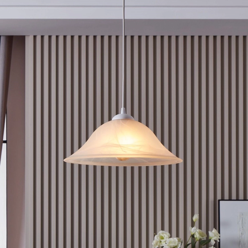 • O clássico lustre ALBANY é fabricado em plástico branco e vidro de alabastro.