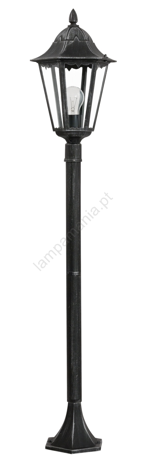 • O candeeiro de pé para exterior utiliza uma lâmpada clássica com soquete E27 e potência máxima de 60W, que pode ser substituída por uma lâmpada económica ou LED.