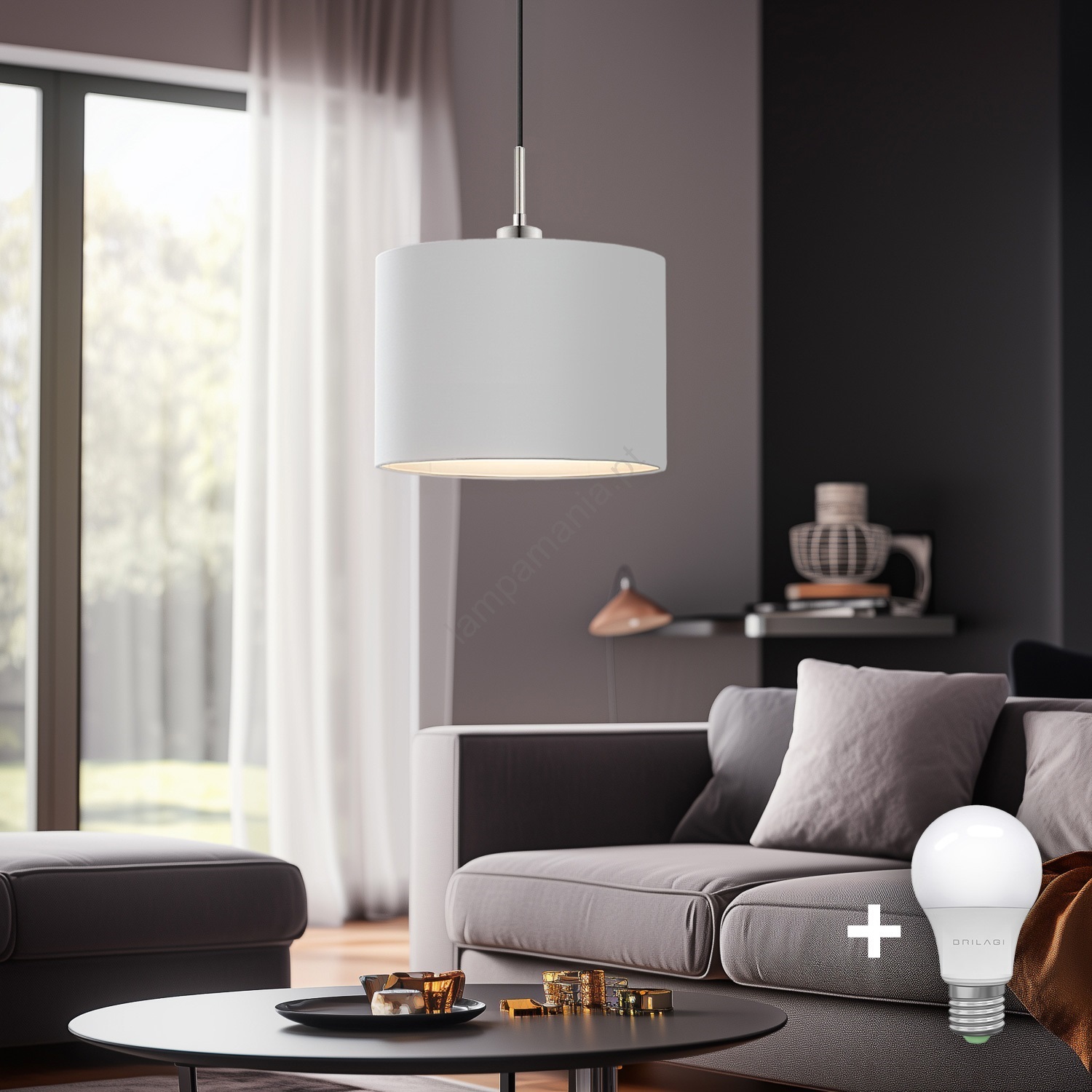 Eglo - Lustre LED suspenso em cabo TUNJA 1xE27/60W/230V branco caracteriza-se por um design agradável e funcional.  Uma lâmpada com casquilho E27 é adequada para a iluminação Aqui, pode comprar outras lâmpadas a preços vantajosos. Terá um complemento interessante para a sua casa.