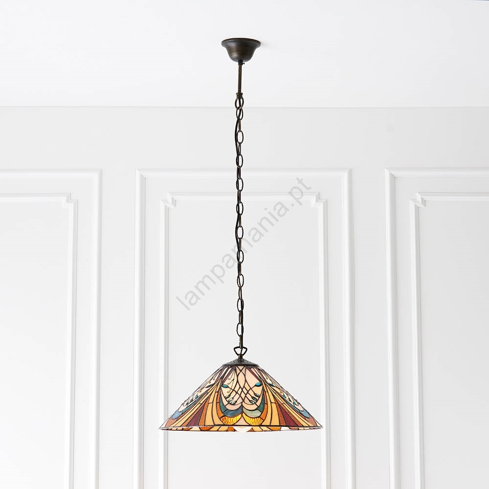 Endon 64162 - Lustre com corrente Tiffany HECTOR, 1xE27/60W/230V, Ø 40 cm caracteriza-se por um design agradável e funcional.  Uma lâmpada com casquilho E27 é adequada para a iluminação Aqui, pode comprar outras lâmpadas a preços vantajosos. Terá um complemento interessante para a sua casa.