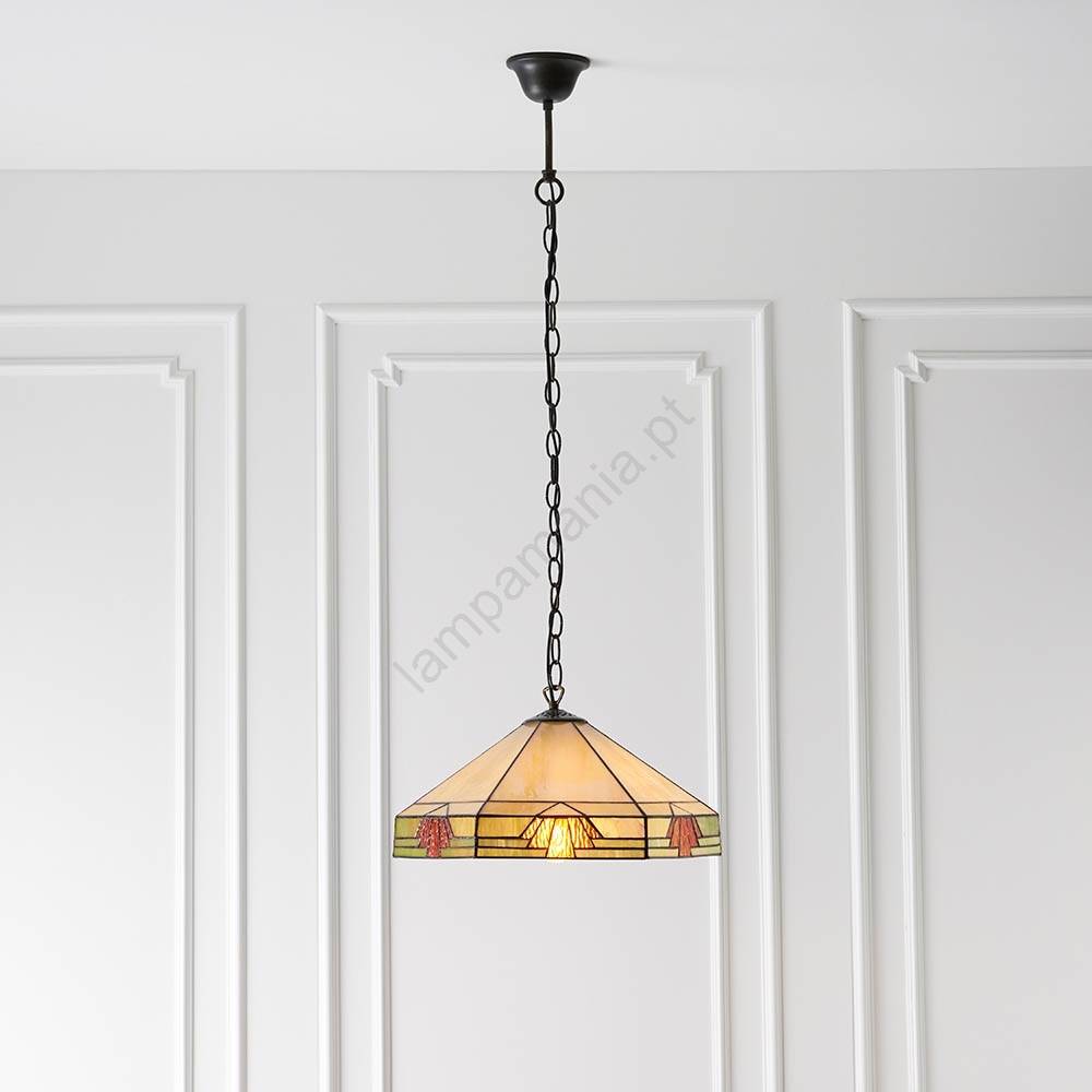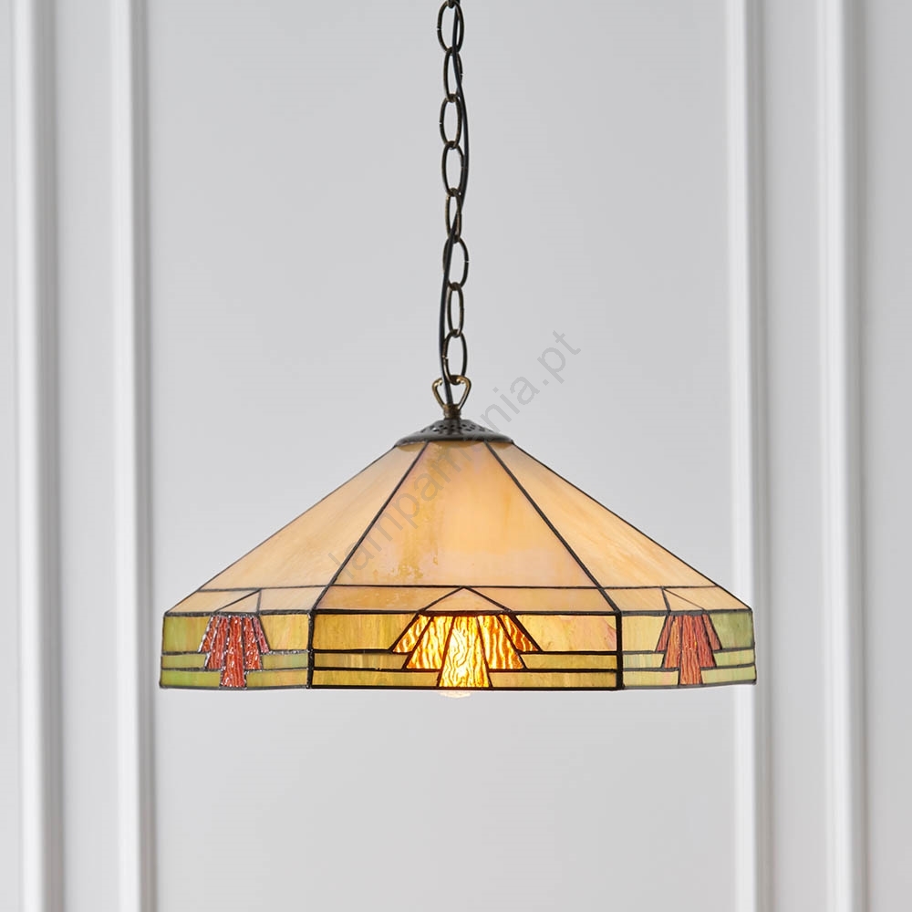 Endon 64285 - Lustre com corrente Tiffany NEVADA 1xE27/60W/230V Ø 35 cm caracteriza-se por um design agradável e funcional.  Uma lâmpada com casquilho E27 é adequada para a iluminação Aqui, pode comprar outras lâmpadas a preços vantajosos. Terá um complemento interessante para a sua casa.