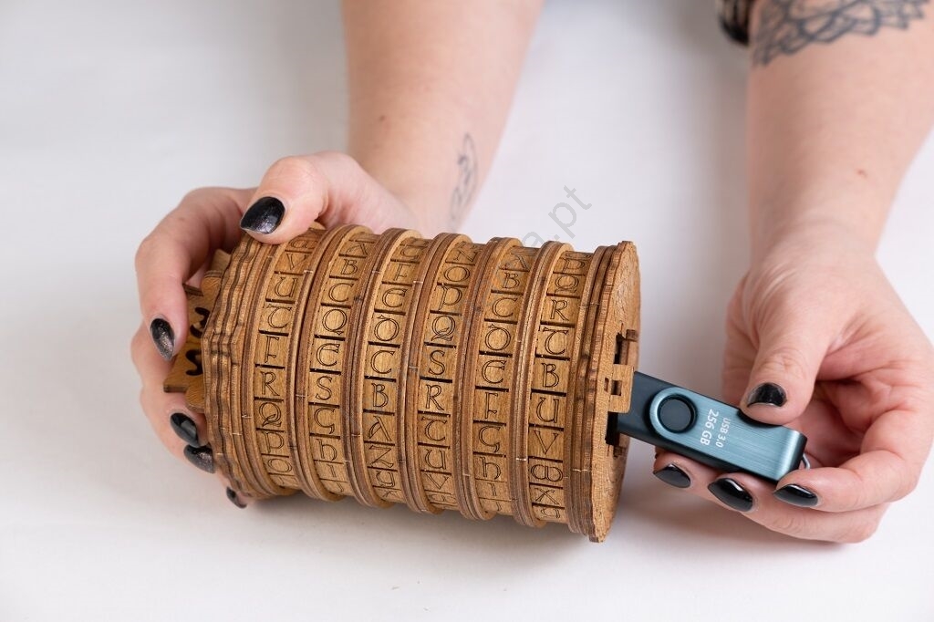 • Coloque o presente no compartimento interno, defina seu código personalizado, sele-o, desafie seu amigo e observe como ele tenta abrir o Cryptex.