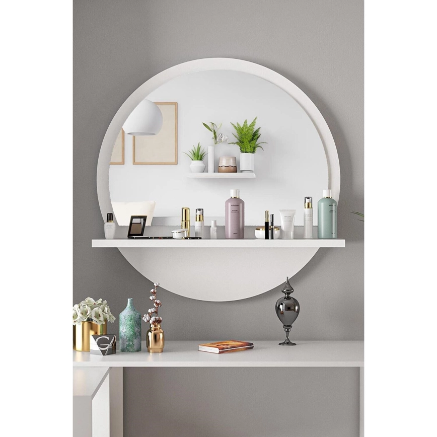 Espelho de parede com uma prateleira diâmetro 60 cm branco