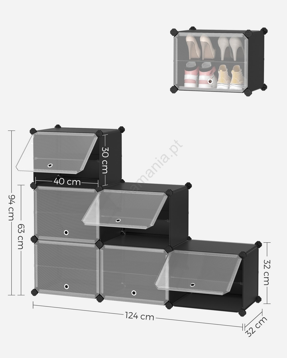 • Pode ser empilhada e adaptada ao seu espaço e preferências, maximizando o aproveitamento de cada centímetro do seu corredor.