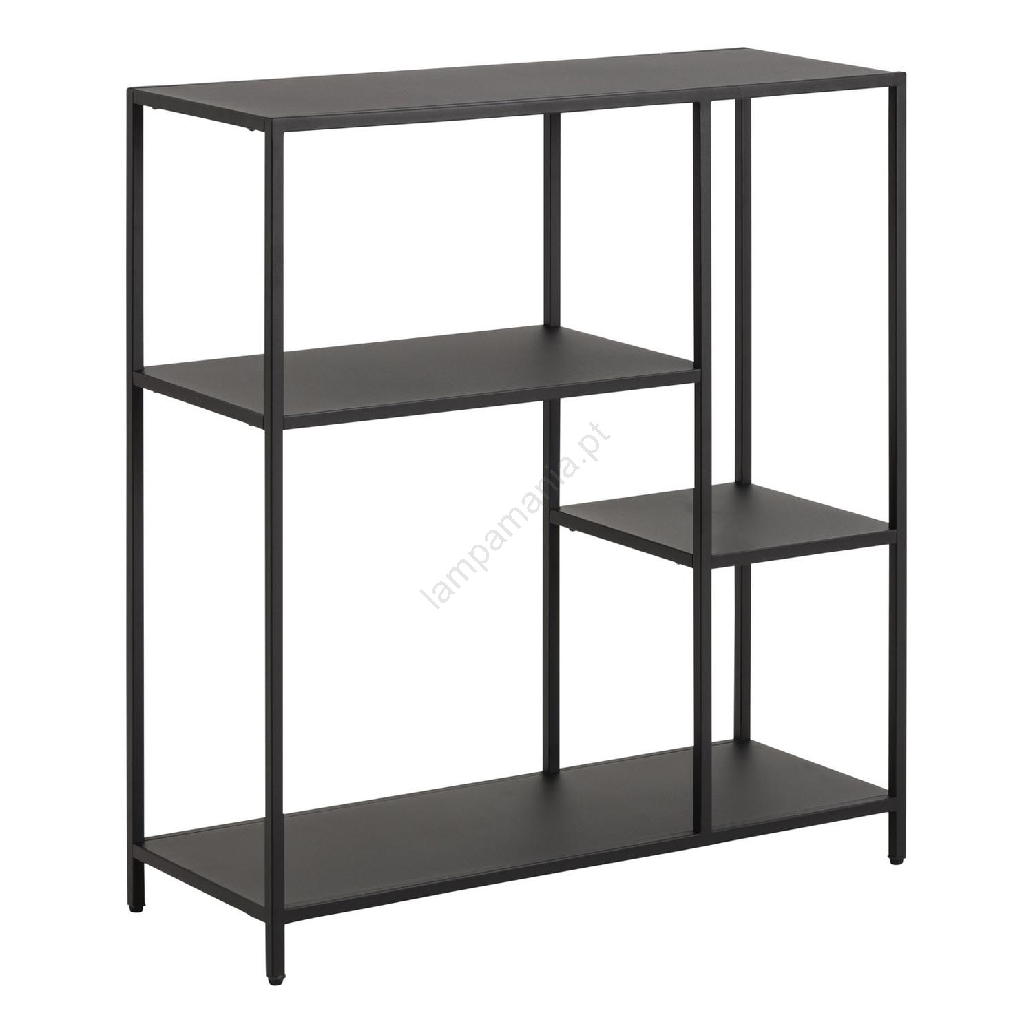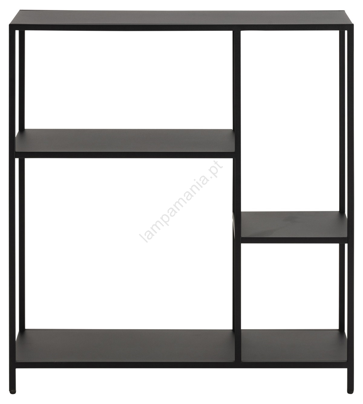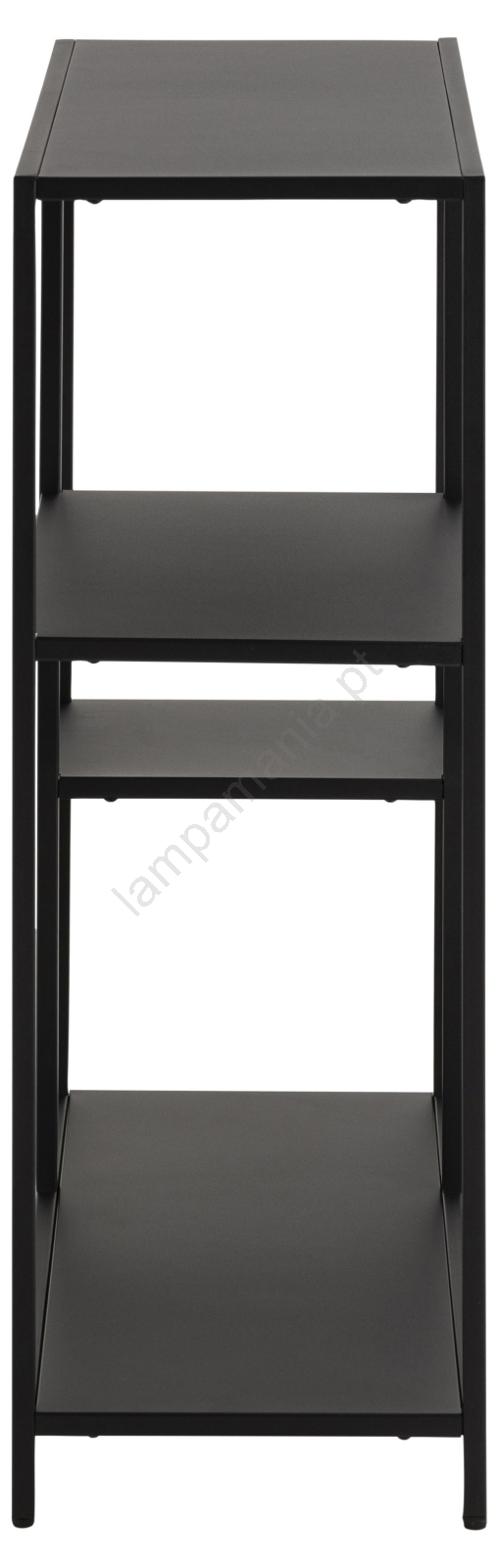 • Estrutura, 3 prateleiras e base em aço preto fosco com pintura em pó texturizada e detalhes assimétricos.