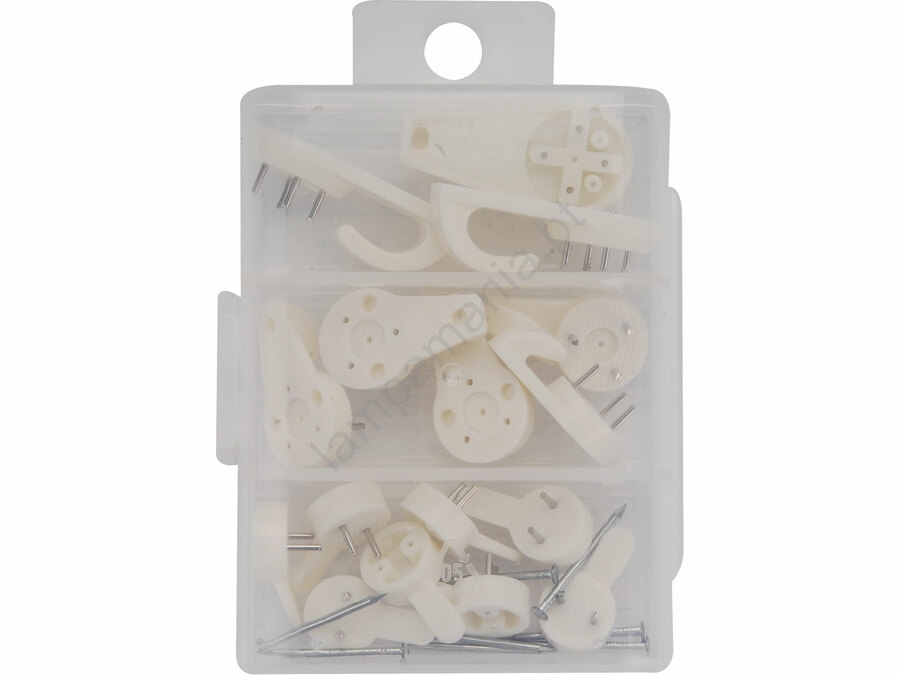 • Ganchos universais de plástico em 3 tamanhos.