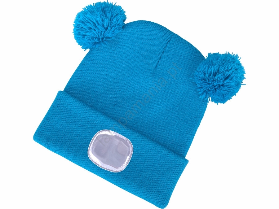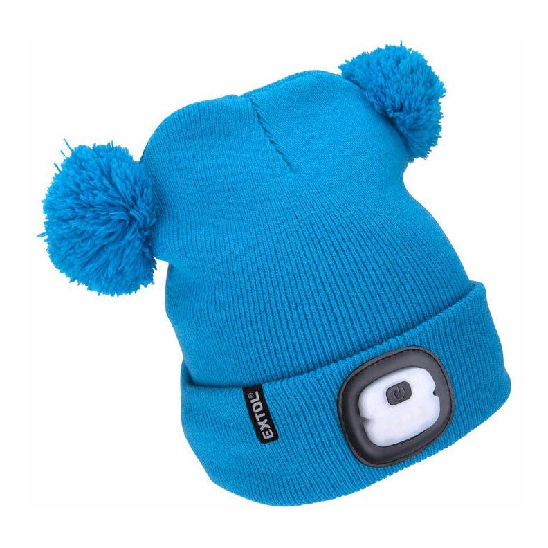 Extol - Gorro com uma lanterna de cabeça e carregador USB 250 mAh azul com pompoms tamanho infantil